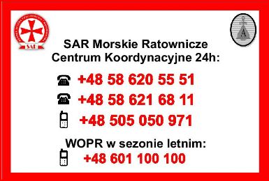 Pozostałoby tylko życzyć wszystkim udanego sezonu, dobrych wiatrów i bezpiecznych powrotów. A, by nie obyło się bez odrobiny „dydaktyki”, to namawiam wszystkich do wpisania w telefony komórkowe numerów do SAR. Większość kłopotów miewamy jednak w pobliżu brzegów. Telefon nawet z drugiego końca świata naprawdę może pomóc rozwiązać wiele problemów. Niekoniecznie od razu wezwanie pełnowymiarowej pomocy. Dla ułatwienia prezentuję te numery na projekcie wodo- i UV-odpornej naklejki, którą będziemy kolportować przed sezonem.