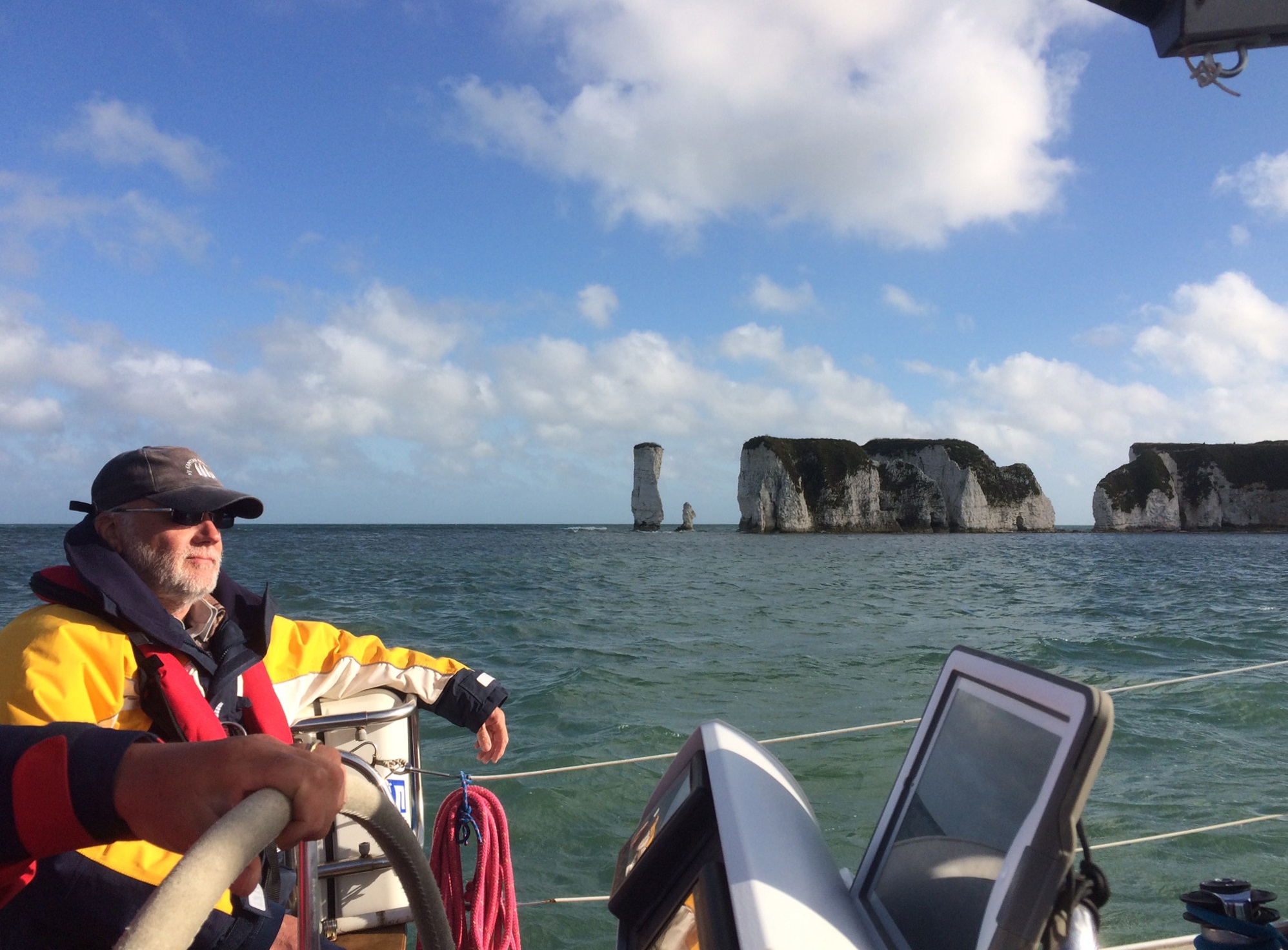 Następnego dnia (08.08) o godz. 0700 oddaliśmy cumy i przy ładnej pogodzie, i niezbyt silnym wietrze dopłynęliśmy po południu do portu Weymouth (48 Mm). Po drodze podziwialiśmy słynne „Igły” (Niddles) i klify Anvil's Point i St. Alban's Head. Płynąc dość blisko brzegu widzieliśmy ciekawie ukształtowane przez wiatr i fale struktury skalne oraz spacerujących ludzi.