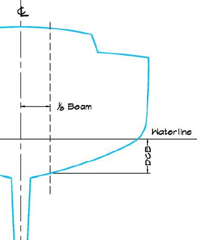 BWod = (CWP^2/11.7) x Lwl (w stopach) x Bwl^3(w stopach)