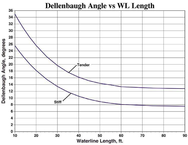 To ostatnie - od czego wyszliśmy, chcąc określić jak sztywny jest nasz jacht - standardowo określa się obliczając tzw. kąt Dellenbaugh’a. Jest to kąt przechyłu jaki uzyskamy niosąc standardowe żagle płynąc na wiatr przy prędkości wiatru pozornego 13.7 węzłów.