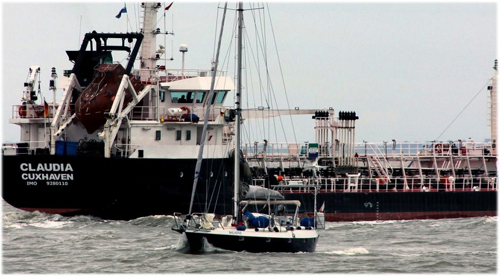 Postój, miasteczko, sznycle w marinowej knajpie. Wszystko jak należy. Rano ze stadem jachtów ruszyliśmy w dół Łaby. Po 6 godzinach cała ferajna skręciła na północ na Helgoland, a my rozpoczęliśmy przebijanie się na zachód. Skracając opowieści, tylko dwie impresje z tego przelotu.