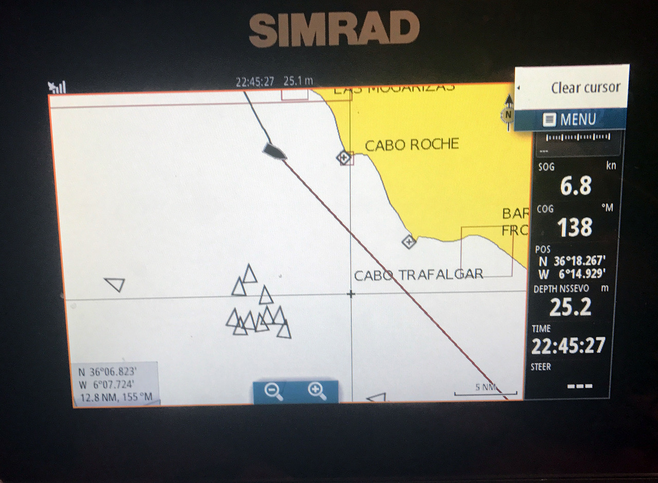 Morze Alboran przeczołgało nas ciut ostatniej doby po wyjściu z Ceuty wiatrem do ponad 40 węzłów i rozkołysem godnym lepszej sprawy. Dzięki temu jednak przelot dobowy wyniósł 160Mm a chwilowe prędkości 20 tonowego jachtu przy zjazdach z fali przekraczały 12 węzłów.