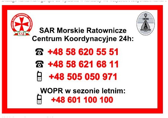Dlatego namawiam gorąco do wpisania w kontakty we wszystkich telefonach numerów pokazanych poniżej na naklejce, którą SAJ zaczał właśnie rozdawać w marinach.