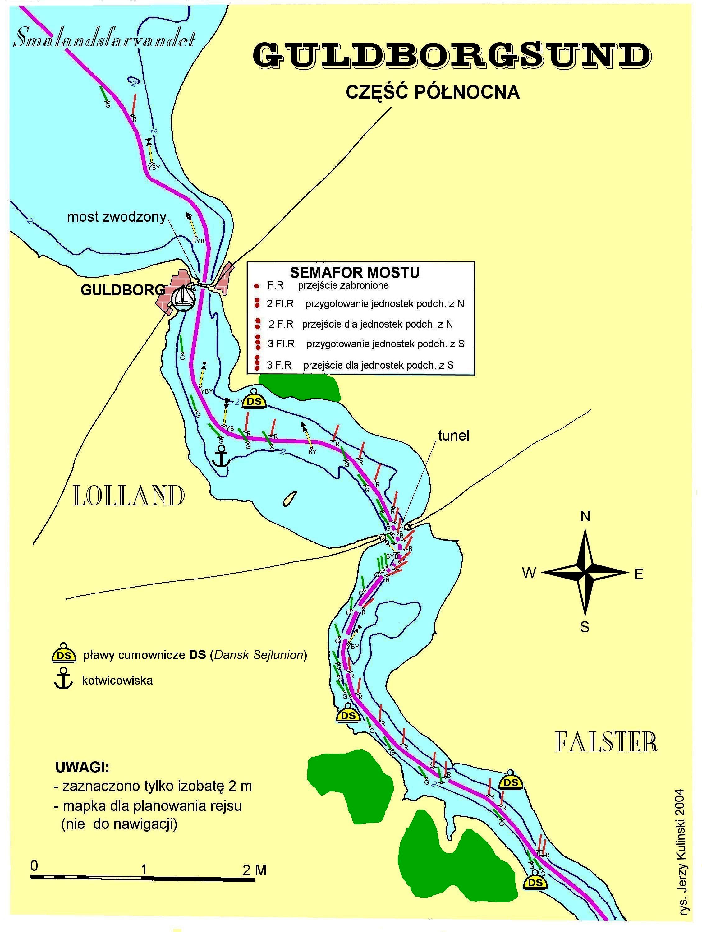 A więc ruszamy cieśniną między Falster, a Lollandią. Cieśnina zowie Guldborgsund. To dość wąskie, ale dobrze oznakowane przejście. Niewielką trudnością może być prąd