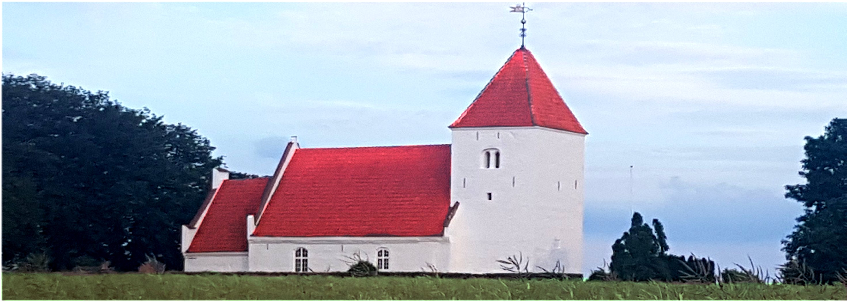 zadbanym cmentarzem, którego ciągłość sięga zapewne setek lat, z daleka świeci bielą ścian, będąc swego rodzaju symbolem Femø.