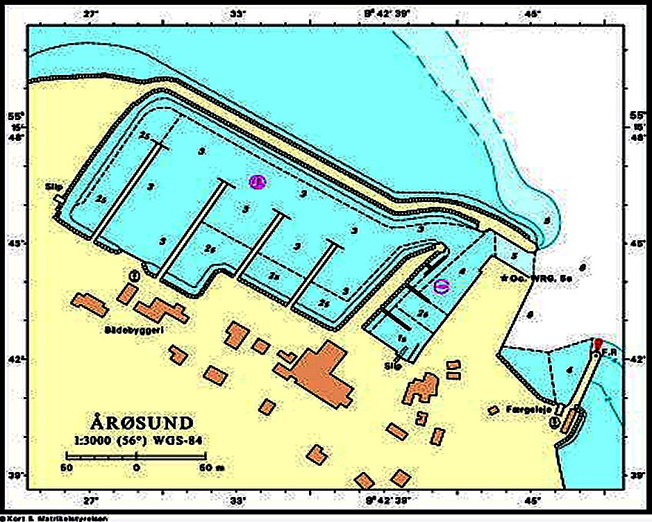 Podejście jest łatwe i nie kryje niespodzianek. Trzeba tylko pamiętać o bezwzględnym pierwszeństwie promu kursującego co godzinę na Jutlandię. Strefa przybrzeżna po północnej stronie portu