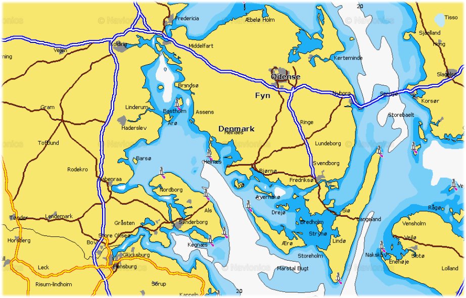 Bogense, urokliwe miasteczko z bardzo wygodnym, dobrze osłoniętym portem i łatwym podejściem. 55° 34,0'N, 10° 04,7'E .