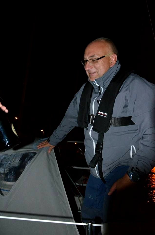 Ruszam do Górek i właściwie mógłbym na silniku, bo pod wiatr, ale nie, chcę żagli. Stawiam grota i foka i płynę wzdłuż półwyspu. Jest pięknie, żeglarsko. Chociaż z tego muszę skorzystać. Po chwili zaczynają się telefony. Co i jak, dlaczego? Opowiadam i zastanawiam się jednocześnie gdzie popełniłem błąd, co zrobiłem źle? Może szczęścia zabrakło? Trudno o jednoznaczną odpowiedź. Pod koniec, gdy mijam metę regat (boja GW) tak sobie myślę, że nie ktoś abstrakcyjny, ale chyba Pan Bóg podjął za mnie decyzję i zabronił mi płynąć dalej. Widocznie obawiał się, że adrenalina padnie Chabowskiemu na mózg i będzie chciał ciągnąć do mety bez względu na pogodę. Tak to postrzegam i z Panem Bogiem się nie kłócę. Do Górek dopływam już po zmroku, gdzie czeka na mnie Wojtek, który pomaga przycumować. Na żeglarzy można liczyć. Mam dług wobec polledowej załogi, wobec obsługi regat, która z morza (Krystian Szypka) i z lądu (Marysia Kurant), robiła co mogła i co potrzebowałem. Wracam do domu autem i przełączam się w tryb kibica i jak się okazuje, emocje wcale mocno nie opadają, bo tam daleko na morzu dzieje się sporo. W załączeniu fotki z mojego nocnego wejścia do Władysławowa. Autorem zdjęć jest Michał „Czołg” Ruciński.