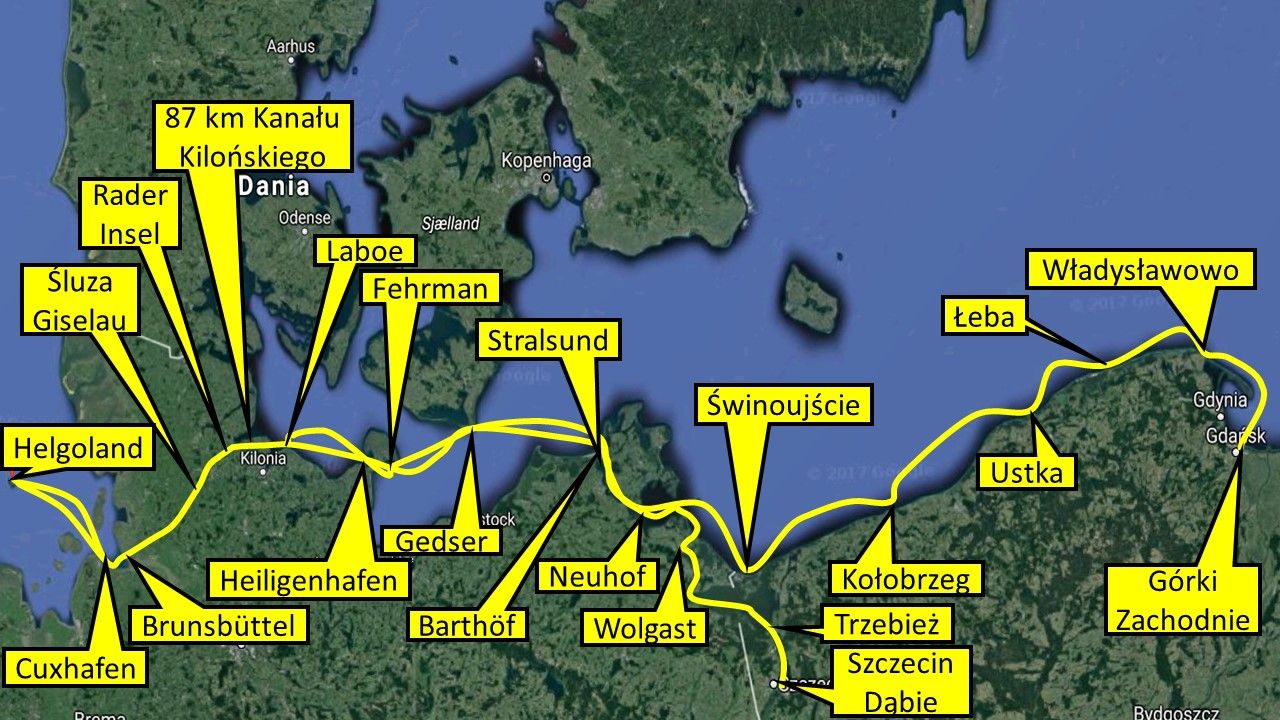 Rejs trwał 29 dni. Przepłynęliśmy 856 Mm przez 3 kraje. Zaliczyliśmy 22 porty, dwukrotnie: Cuxhafen, Gedser, Brunsbüttel.