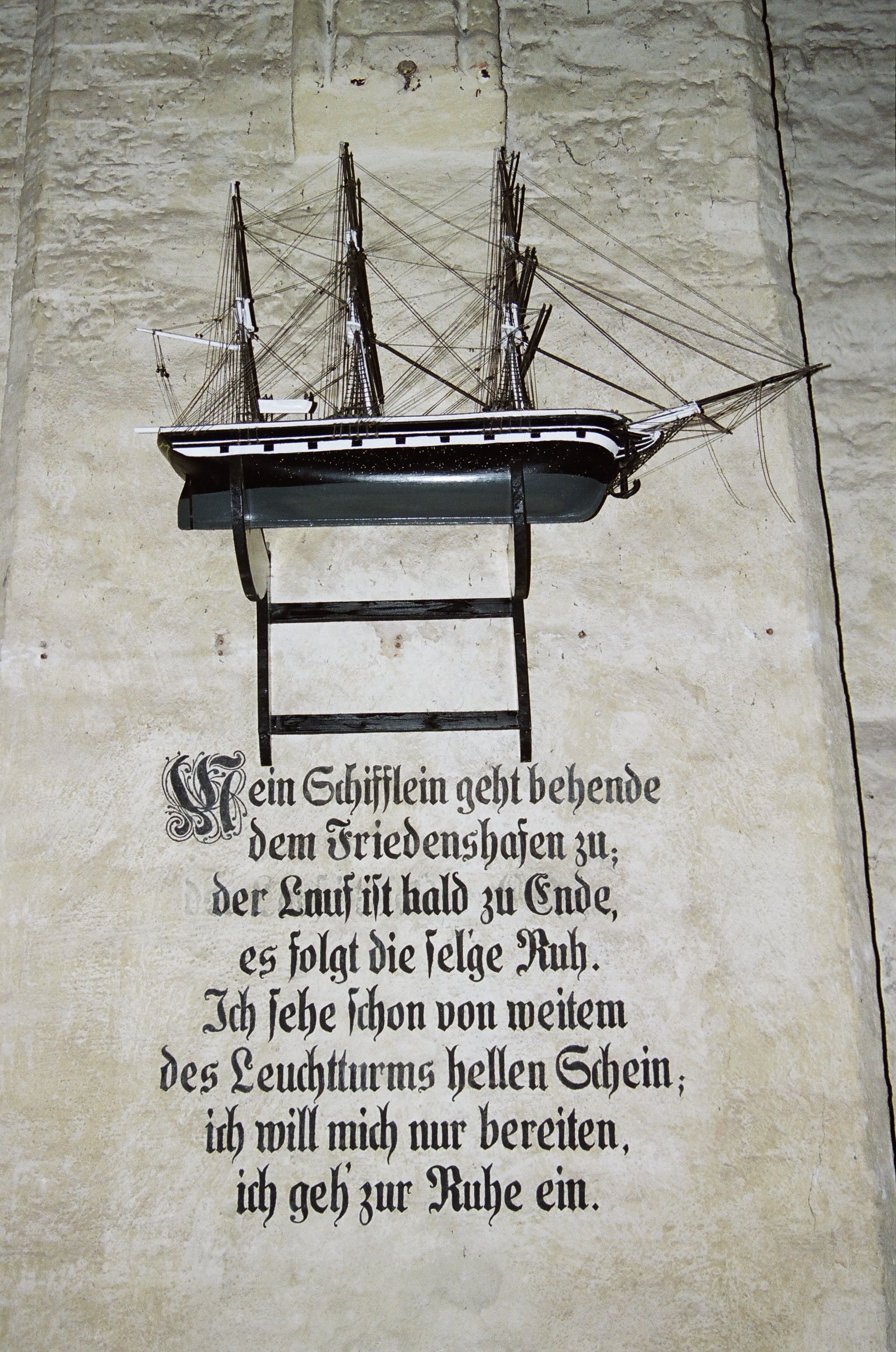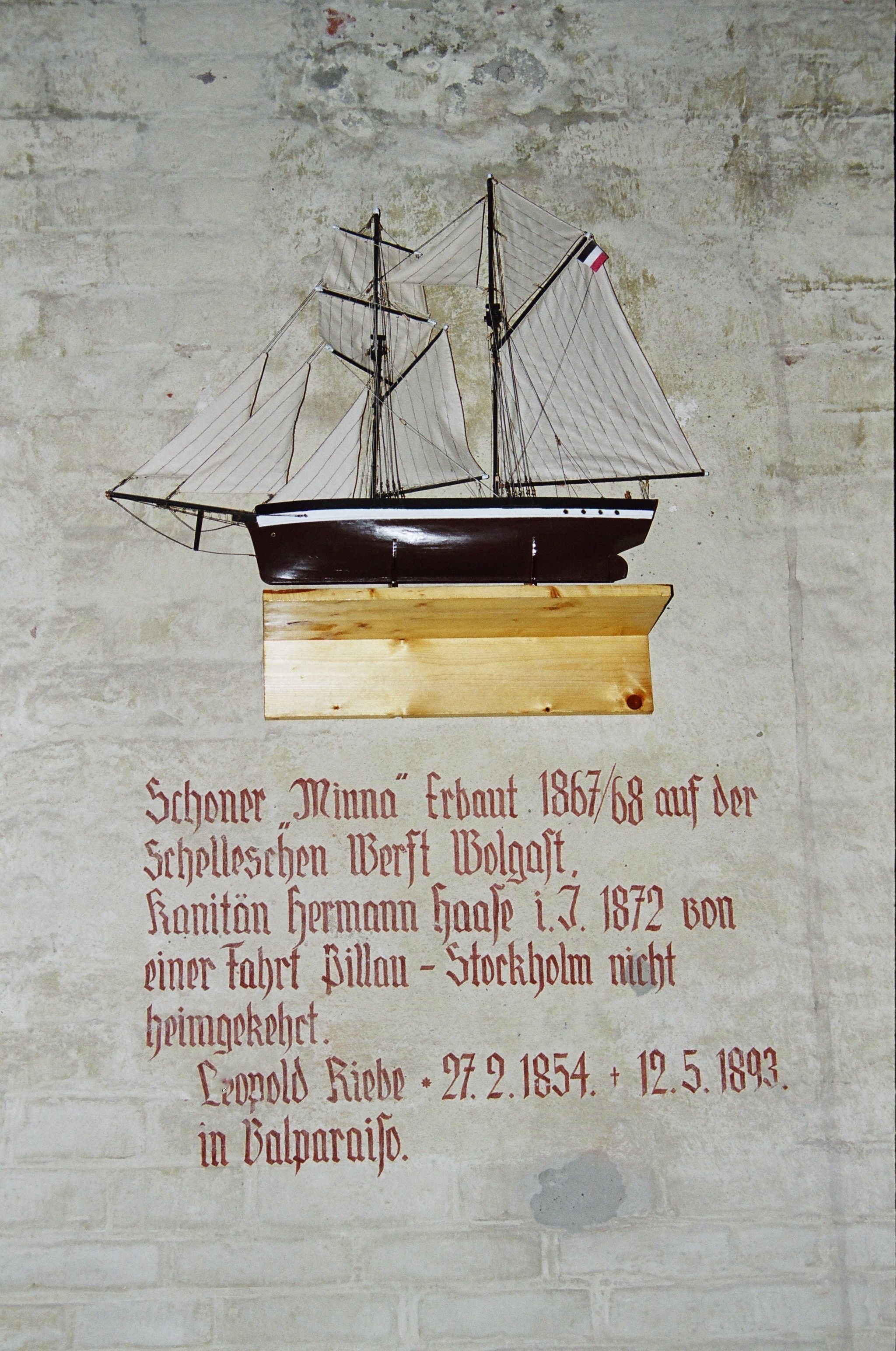 Rozdziela je model szkunera wotywnego „Minna”, a pod nim epitafia