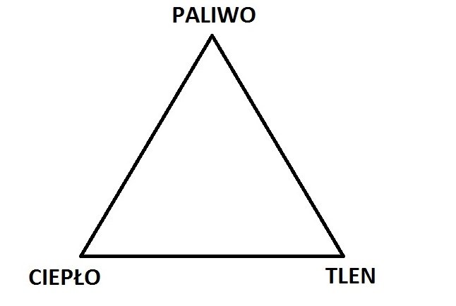 Aby zaszło spalanie, w jednym miejscu i czasie muszą się znaleźć trzy elementy, tworzące tzw. „trójkąt spalania”. Usunięcie jednego z tych trzech elementów spowoduje przerwanie procesu spalania, a nazywamy je gaszeniem. Skąd się biorą poszczególne składniki? Tlen – z powietrza, jest go około 21%. Paliwo – materiałów palnych otacza nas wiele, najczęściej są to tzw. węglowodory, a więc substancje, zbudowane z atomów węgla (C) oraz wodoru (H) np. bliski sercu wodniaka C2H5OH, spotykany na jachtach powszechnie…, jako paliwo w kuchenkach spirytusowych! Z atomów takich (inne na chwilę pomijamy, jako mniej dla nas istotne) zbudowane jest drewno, plastik, olej napędowy, benzyna i LPG. Ważna uwaga: aby materiały te mogły się spalić, ich cząsteczki muszą zostać rozbite (rozłożone) na pojedyncze atomy węgla C i wodoru H,zwane „wolnymi rodnikami”, które w połączeniu z tlenem z atmosfery utworzą produkty spalania CO2 czy H2O czyli dwutlenek węgla i wodę (w formie niewidocznej pary). Aby doszło do rozbicia cząsteczek na atomy, potrzeba ciepła pochodzącego np. z zapalniczki, żaru z papierosa czy ciepła wydzielonego na skutek zwarcia elektrycznego. Prawda, że proste?