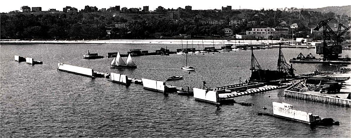 Tuż przed opuszczeniem Gdyni Niemcy planowo zniszczyli port. Wysadzano instalacje, dźwigi i budynki oraz falochrony. Uciepiał tez basen jachtowy. Oba falochrony zostały mniej więcej w połowie całkowicie zburzone, reszta ich konstrukcji była poważnie uszkodzona. W wejściu Niemcy zatopili pogłębiarkę, blokując je całkowicie.