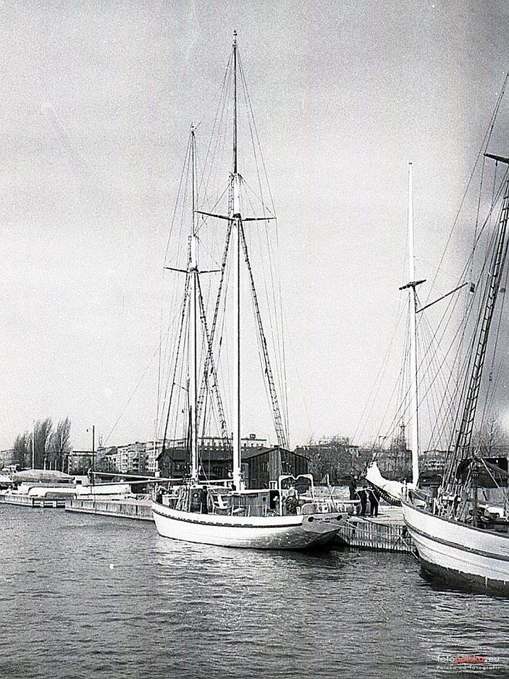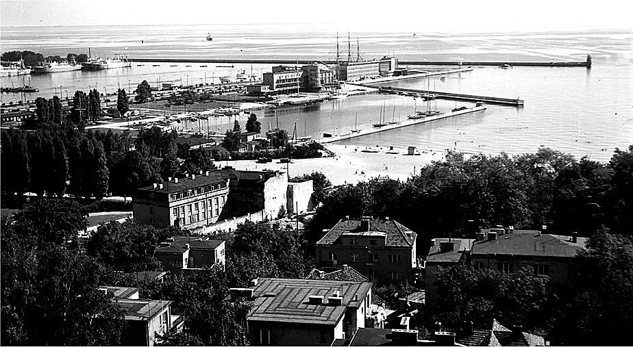 Tu zaczynają się czasy, które pamiętam. Jachty były nadal w ogromnej większości jeszcze przedwojenne. Stopniowo jednak zaczynały się pojawiać nowe jachty, o czym miałem okazję niedawno pisać. Wyrwy w falochronach nadal istniały, zostały naprawione dopiero w początkach lat sześćdziesiątych, przed „Złotym Pucharem Klasy Finn”, którego organizację po raz pierwszy w historii przyznano Polsce. W rogu Basenu tam, gdzie dziś jest pawilon „Kotwicy” stał drewniany piętrowy budyneczek YKP, za którym ukryty był barak zajmowany wtedy przez „Kotwicę”. Pawilon YKP został na około 10 lat zastąpiony przez podobny murowany, była w nim także siedziba okręgu gdańskiego PZŻ. Dalej, w rejonie zajmowanym dziś przez „Marinę Gdynia” była wielka szopa – hangar, w którym remontowano jachty, atam gdzie dziś są parkingi, lunapark i pawilony gastronomiczne, kilkabaraków, w części wykorzystywanych przez żeglarzy, w części przez jakieś instytucje, m.in. biuro projektów budownictwa. Kolejny narożnik, to drewniany, zbudowany przez członków około roku 1948 pawilon JKM Gryf” otoczony wysokimi topolami. Charakterystyczny czarny (bo drewno, podobnie jak w poniemieckich barakach było niemalowane, a zaimpregnowane), z „wyżką” nad głównym wejściem, wyrósł na najbardziej reprezentacyjny obiekt po Szkole Rybołówstwa.