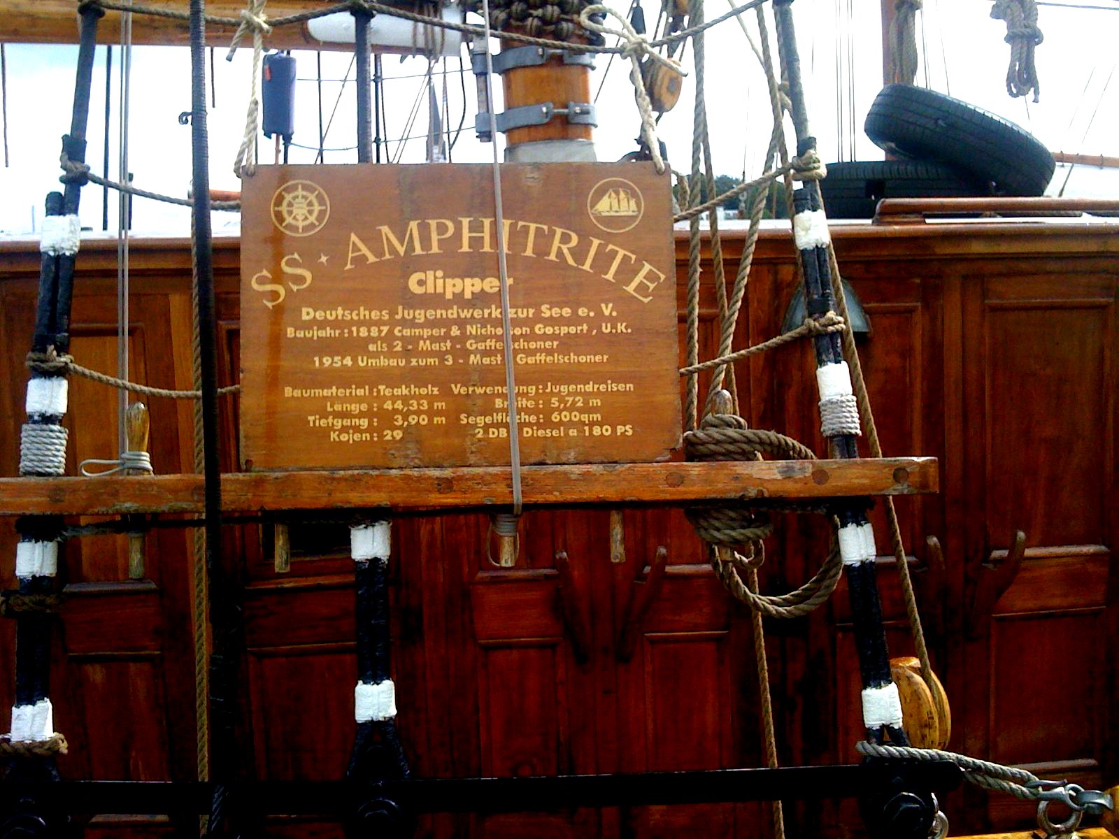 S/V Amphitrite jest znakomicie utrzymana, wręcz wypieszczona, a zarazem jest jedynym drewnianym szkunerem w tym szacownym gronie, gdzie przeciętny wiek statków oscyluje w przedziale około 90 do 100 lat.