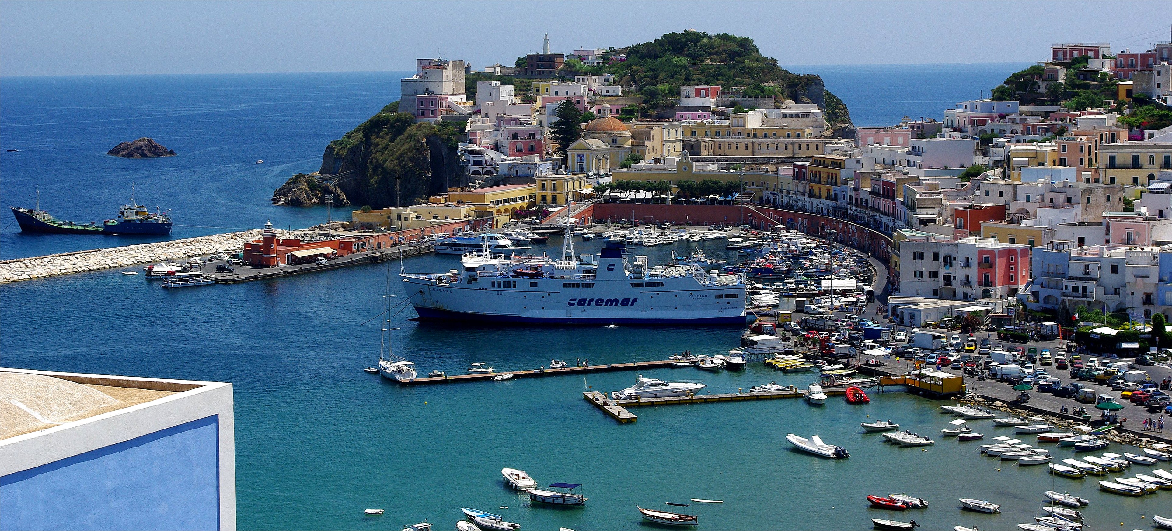 Wyspa daje doskonałe schronienie od wiatrów ze wszystkich stron. Doskonale pamiętam jak nocą rzuciłem kotwicę w leżącej po zachodniej stronie wyspy, w pięknej zatoce Chiaia de Luna (Plaża Księżycowa), gdy zaczął wiać gregale, silny wiatr z północnego-wschodu. Kilkadziesiąt jachtów stojących na kotwicy, na redzie miasteczek w popłochu przybyły tu, chroniąc się przed sztormem! Zatokę - kiedyś antyczny grecki port - z miastem łączy rzymski tunel długości 168 i szerokości 2 - 4 metry przebity w skalnym, wysokim 80 do 100 metrów, klifie. Tunel posiada świetliki i szyby wentylacyjne, i miejscami jest licowany.