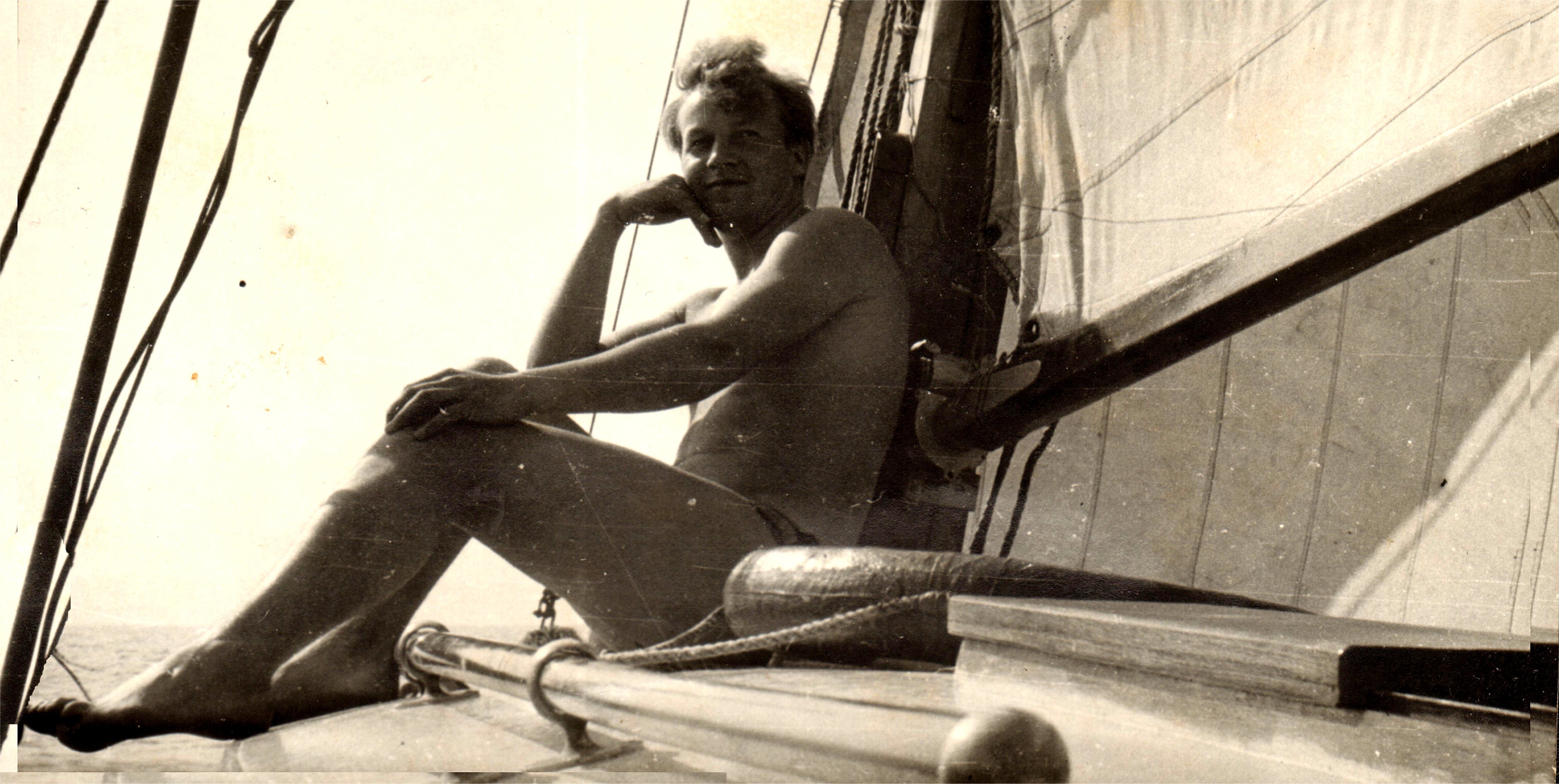 1. 1960, Zalew Wiślany, s/y „Antypasat”, o czym Henio myśli ?