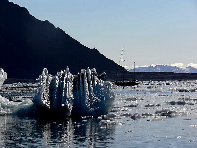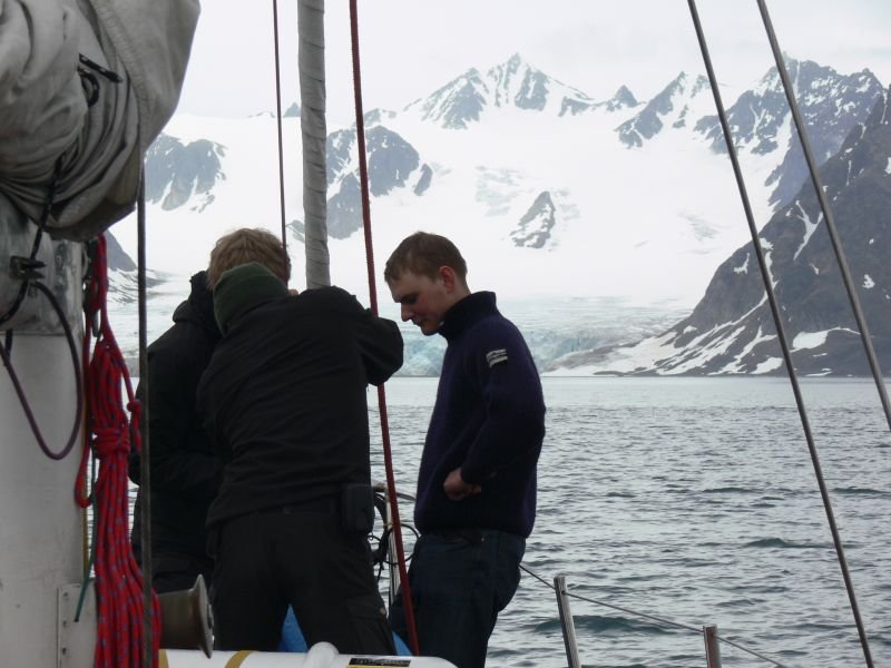 Natomiast na marne trzymanie druga kotwica nie pomaga. Jeżeli nas zrywa, a mimo wszystko chcemy się zakotwiczyć to szukamy lepszego dna. Na dobrym dnie kotwica potrafi trzymać jak diabeł... tego tam. Do tego stopnia, że np. w polodowcowych sendymentach można stać na samym łańcuchu utopionym w osadach i jeszcze mieć kłopot aby ten łańcuch z nich wyrwać. Na przykład w Isbjornhamnie poczynając od zachodu mamy dno kamieniste, piaszczyste i sendymenty w Hansbuchcie. Kiedy wieje naprawdę mocno nurkujemy w zamkniętą ze wszystkich stron zatokę, nie dlatego, że jest osłonięta, bo nie jest, to otwiera kolejny problem, ale dlatego, że na dnie jest muł, który świetnie trzyma kotwicę. Lodowiec nie poleruje skały, wręcz przeciwnie, kruszy ją i mieli, tworzy na dnie warstwę mułu. Lodowiec powstaje ze śniegu, śnieg to opad a opad to jądro kondensacji. Każdy płatek śniegu powstał dookoła ziarenka unoszącego się w atmosferze pyłu. Czoło lodowca kruszy się cały czas, to bezustanny opad mniejszych lub większych kawałków zmetamorfizowanego w lód śniegu, który spada do ciepłej, z punktu widzenia zamarzania, wody, gdzie się topi a pył z jąder kondensacji (różnego pochodzenia, także meteorytowego) nieustannym od wieków deszczem opada na dno morza, tworząc muł w którym kotwica bardzo dobrze trzyma.
