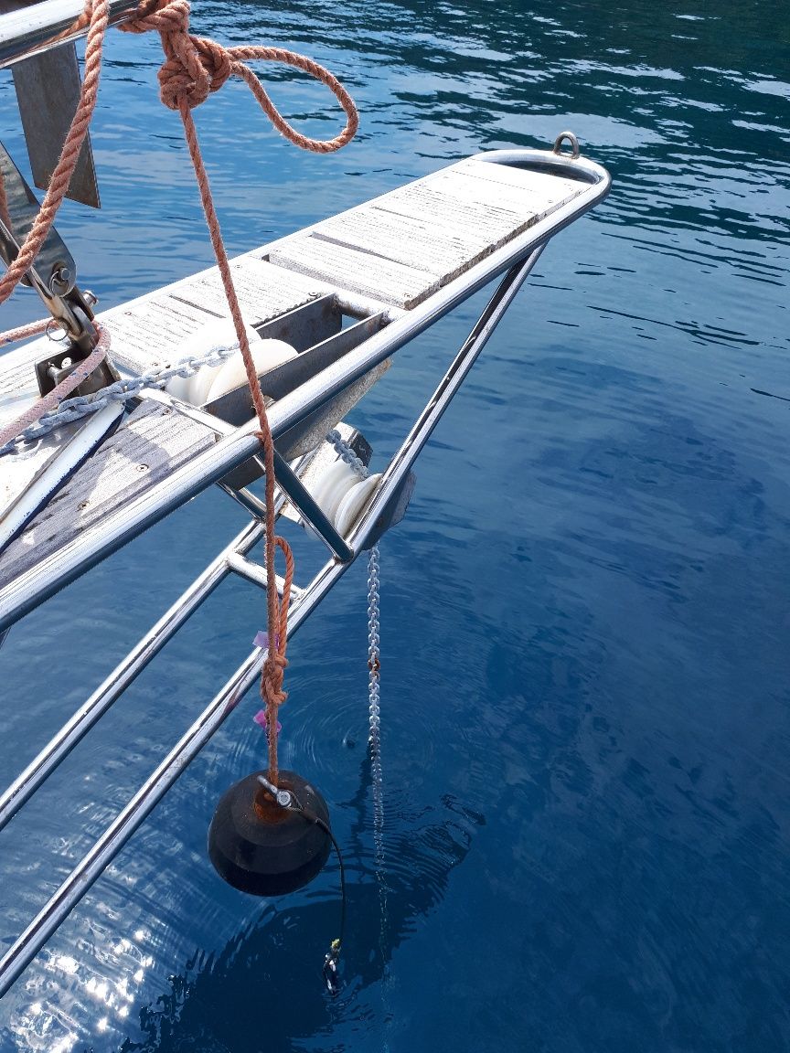 W Hvarze zacząłem się przymierzac do rzucenia podjechala motorówka i grzecznie wskazano mi miejsce za czerwoną boją-miejsce raczej nie oslonięte to rzuciłem obie kotwice i staliśmy dwie noce ,troszkę potem przy wybieraniu tej rufowej pomogłem sobie zapasowym fałem i kabestanem przy maszcie, ale i tak się naszarpalem,ale stałem bezpiecznie.