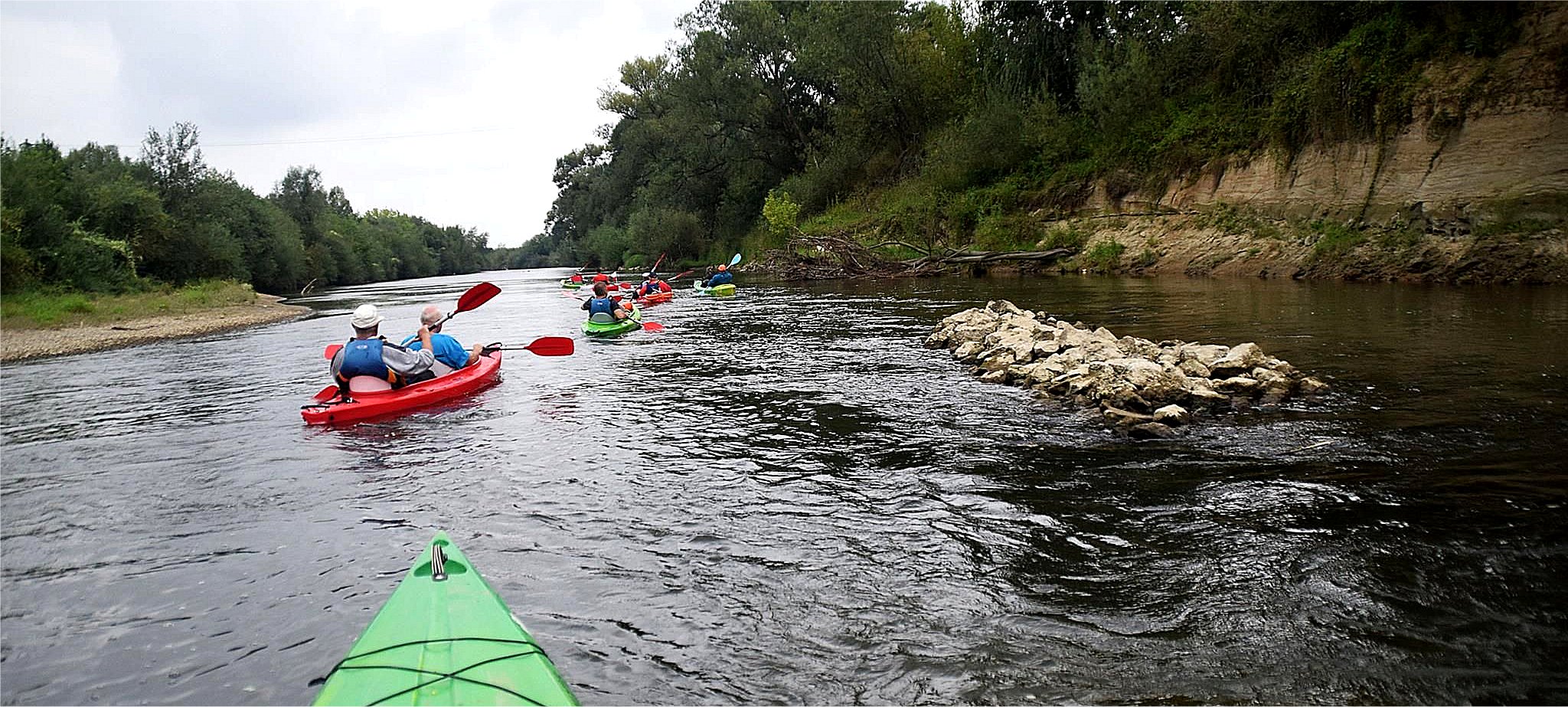 Oczywiście mieliśmy kamizelki na sobie – tak na wszelki wypadek, bo pomimo że Wisłoka płytka ale zdarzały się głębie na wysokość dużego chłopa.
