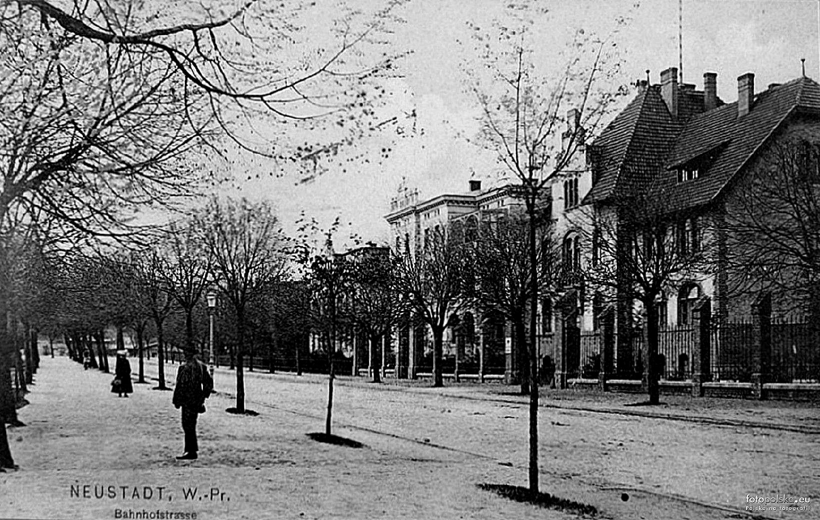 Pierwszy z prawej budynek, w którym mieścił się Urząd Marynarki Handlowej, Wejherowo, Dworcowa7, dziś Kaszubsko-Pomorska Szkoła Wyższa (zdjęcie archiwalne ze strony UM w Gdyni)