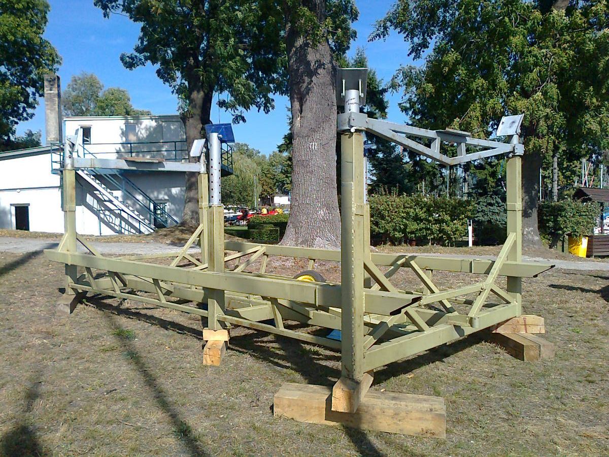 Natomiast do ustawiania preferuję ramę z czterema podporami, ale zakończonymi nie małymi prostokątnymi poduszkami, ale pełną kołyską dopasowaną do kształtu kadłuba w odpowiednich miejscach.