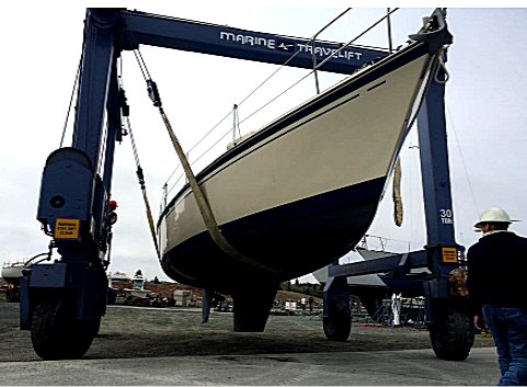 Jacht ze stojącym masztem (masztami) najwygodniej jest wyjąć z wody specjalnym dźwigiem samojezdnym (ang. travelift), zdolnym podnieść otaklowaną jednostkę o masie kilkudziesięciu i więcej ton oraz zawieźć go na miejsce zimowania na lądzie; w odniesieniu do większych jednostek - jest właściwie jedyny sposób. Travelift, który kiedyś można było oglądać tylko na obrazkach z odległych marin, jest dziś maszyną używaną na wielu przystaniach.