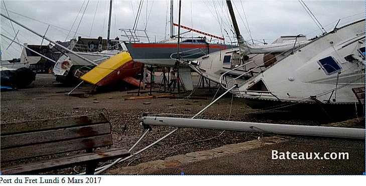 Elektroniczny tygodnik Bateaux publikuje zdjęcia szkód, jakie w portach Bretanii spowodował huragan Zeus, na początku marca ubiegłego roku.