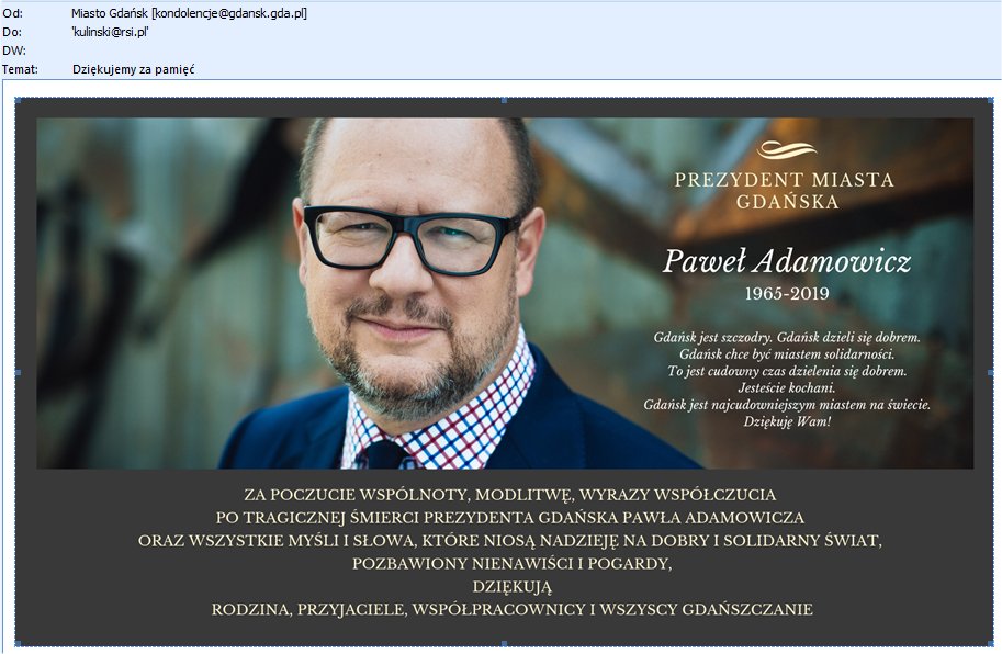 Od Pani V-Prezydent Aleksandry Dulkiewicz otrzymaliśmy podziękowania za kondolencje: