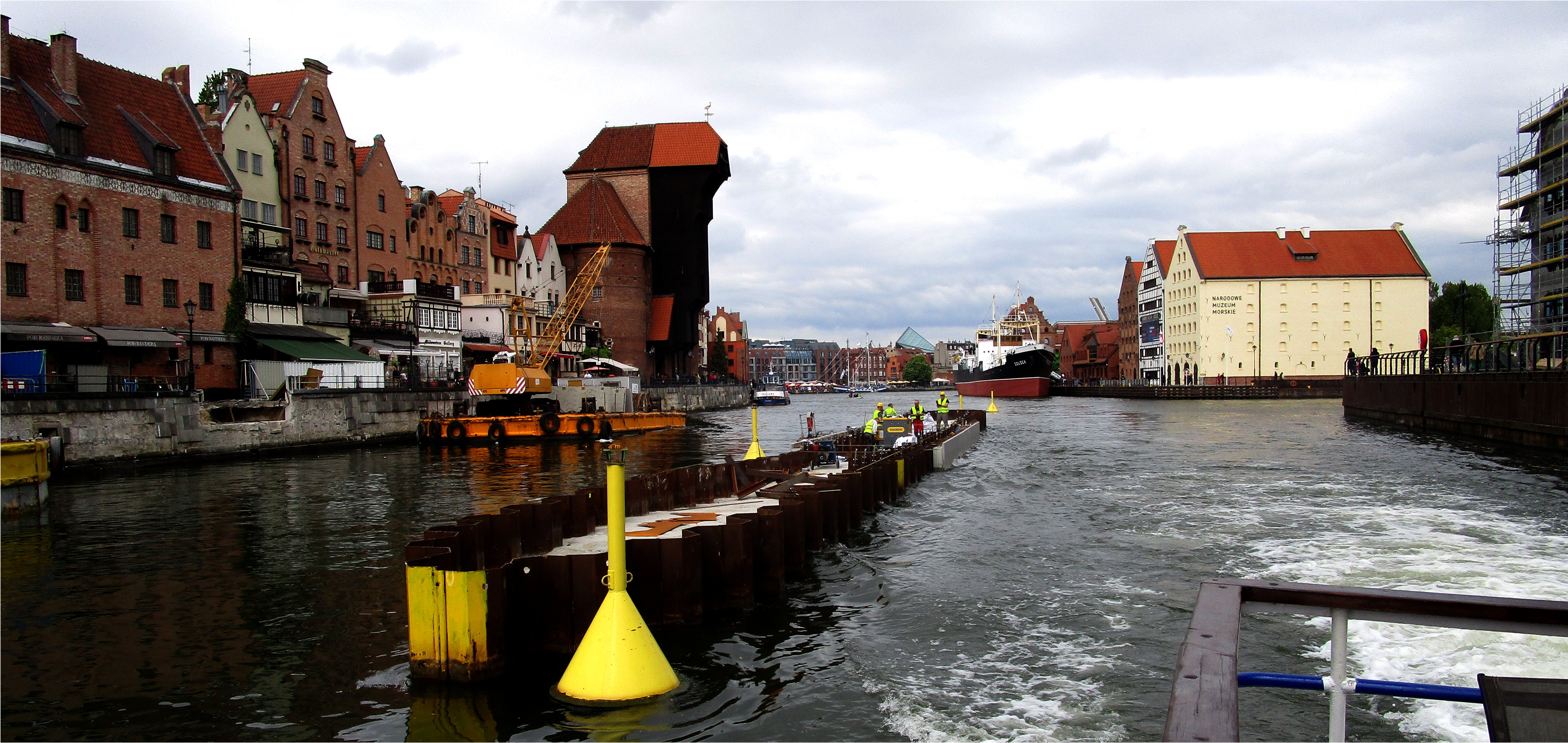 Filar kładki nad Motławą w trakcie budowy (maj 2019). Kładkę usytuowano w odległości około 100 m od Mostu Zielonego.