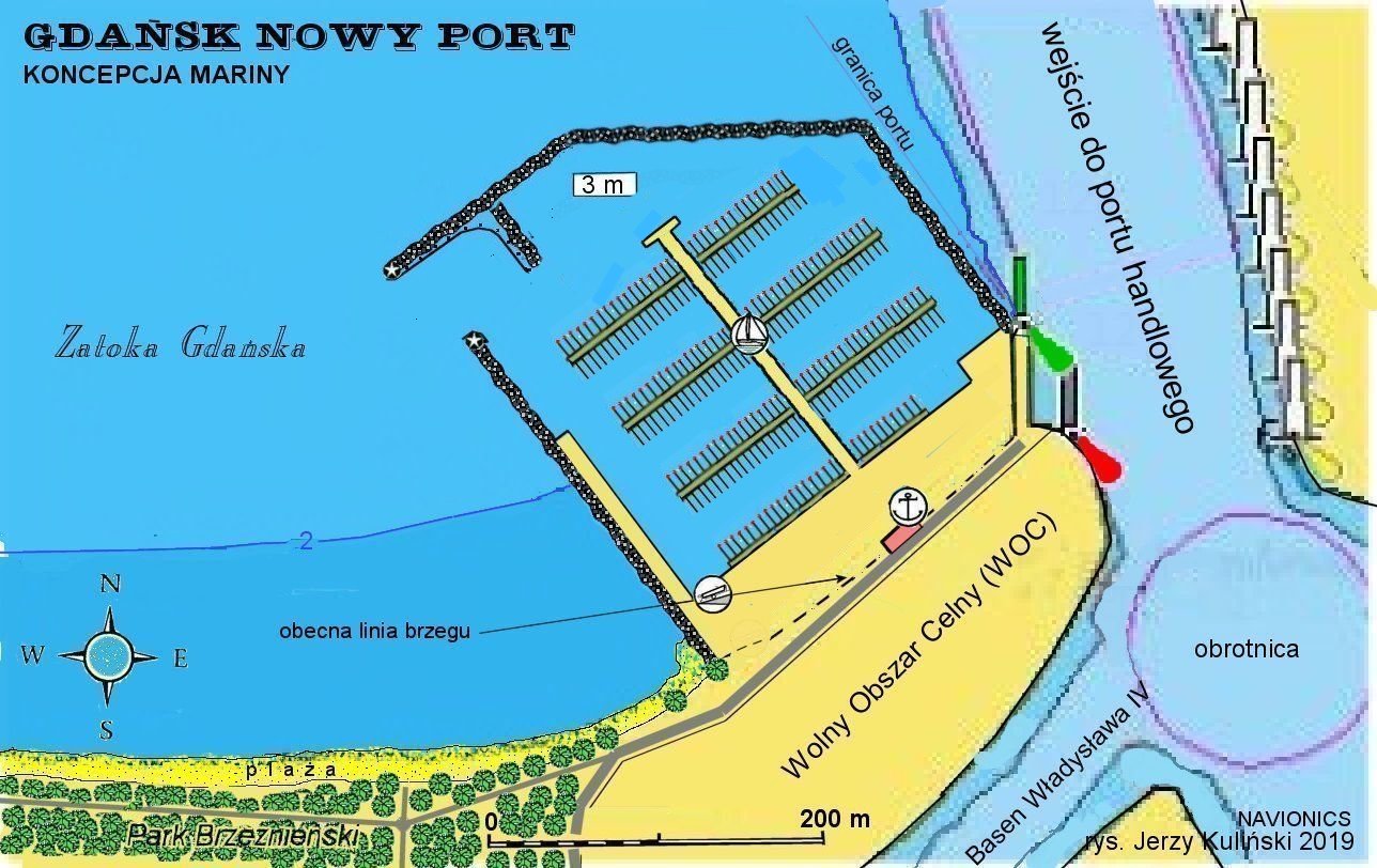 Oczywiście bardzo mnie Twoja wizja takiej mariny bardzo interesuje. Kiedy tylko mogłem np. podczas komentowania parad żeglarskich czy regat mówiłem o konieczności budowy marin dla ciągle przybywających jachtów i braku miejsc dla nich. O budowie mariny na akwenie od mola w Brzeźnie do zachodniego falochronu wejścia do Nowego Portu wspominał ładnych kilka temu lat Kusznierewicz Mam wątpliwości co do układu prądów na linii styku wody z lądem w kierunku do falochronu zachodniego, czy nie zostaną zakłócone i wejście do wizyjnej Mariny nie będzie zasypywane podobnie jak wejście do basenu Zaruskiego w Gdyni. Poza tym dzisiaj marina bez miejsc do zimowego postoju nie rozwiązuje problemu. Z WOC-em jeśli chodzi o teren na lądzie może nie być łatwo.