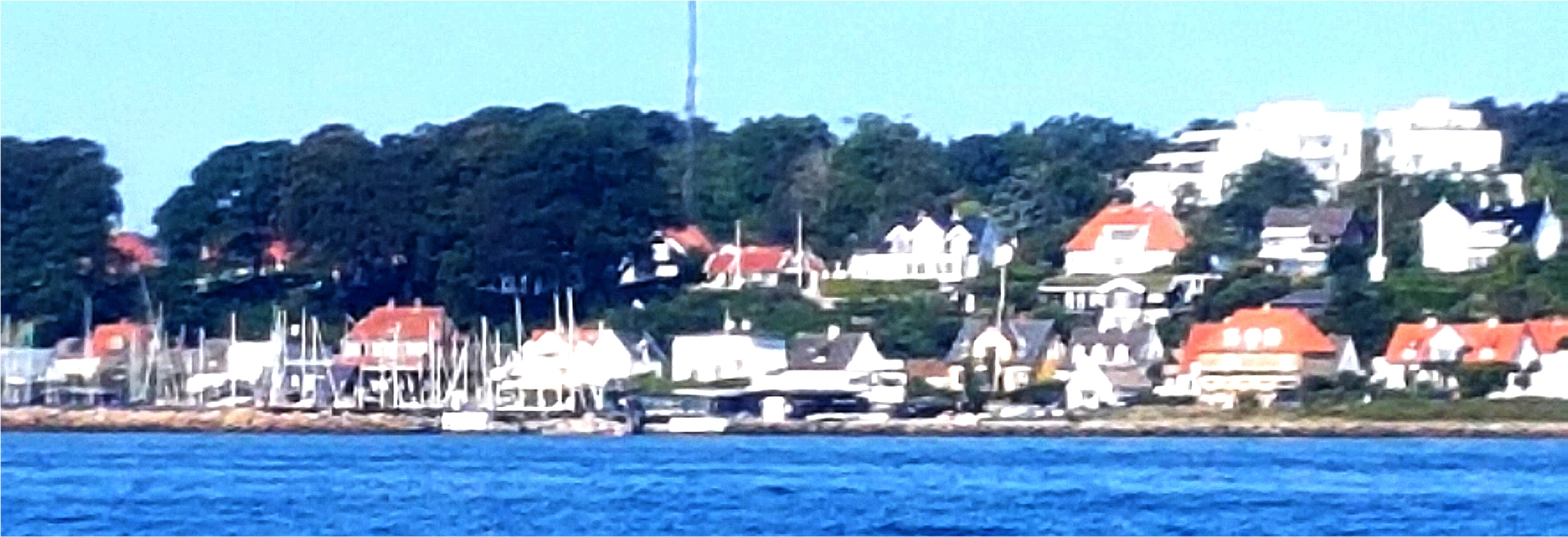 Dodatkowo płynąc z pólnocy trafiliśmy na przeciwny prąd, który spowalniał nas o dobre 1.5 węzła. A kotłowanina niedużej przecież fali na wysokości miasta oraz wiry na powierzchni wody mogły zaimponować. Chyba nie przypadkiem lokalesi plywają pod samym brzegiem, dużo szybciej od nas. Tyle, że przy mieście to nie pomaga.
