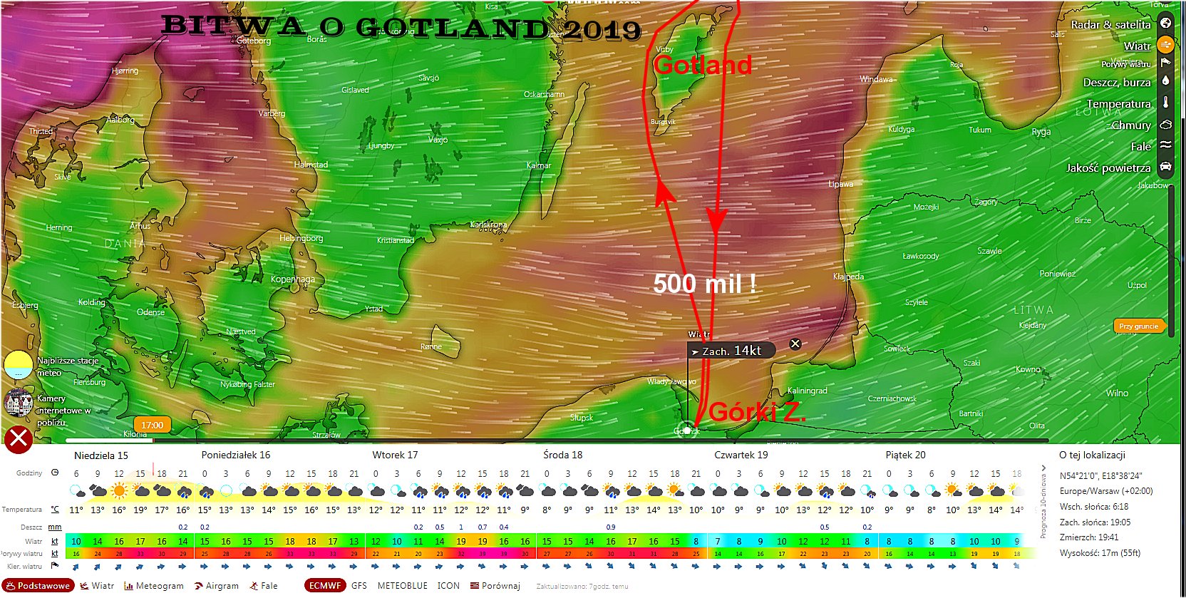 Prognoza pogody zapowiada na początku silny, południowo-zachodni wiatr o prędkości 22-28 węzłów i sporą falę (stan morza 3-4). Instytut Meteorologii i Gospodarki Wodnej w dzisiejszym porannym komunikacie wydał ostrzeżenie przed sztormem na obszar Bałtyku Południowego.