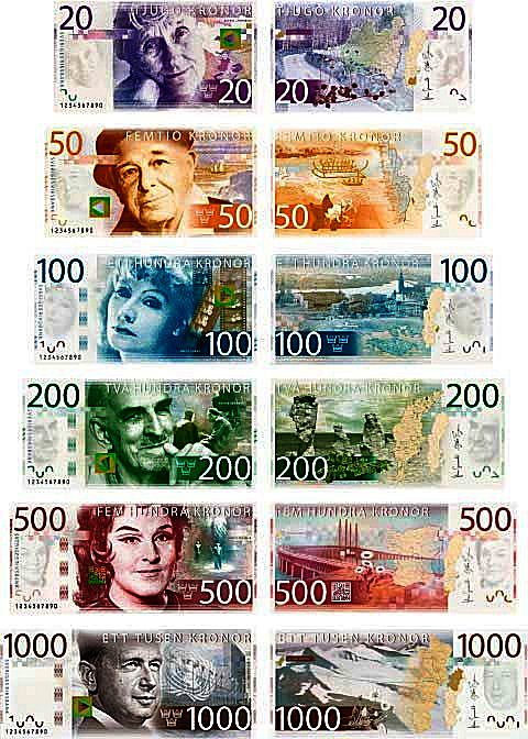 Bank Szwecji kilka lat temu wymienił banknoty, na nowe, lepsze/ bezpieczniejsze, ładniejsze, z wizerunkami kobiet :-) (było kiedyś na SSI).