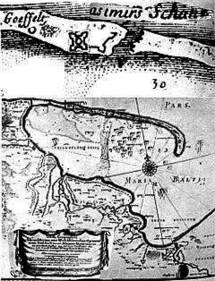 Oryginalne zdjęcie mapki z XVII w. było orientowane odwrotnie,