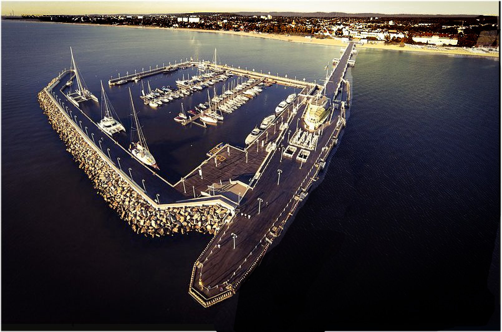 I nagle pojawiła się koncepcja budowy przystani jachtowej. Nie klubowej, ale ekskluzywnej, luksusowej mariny, do której zawijać będą lśniące jachty, najlepiej zagraniczne, oczywiście z VIP-ami i niebiednymi w kokpitach. No i fanie, no i słusznie bo przecież Sopot, to już za PRL robił za „Perłę Bałtyku” na przystań jachtową zasługuje. Prawdziwy diabeł nie ogranicza się tkwienia w szczegółach. Otóż postanowiono zbudować żelbetową, obrzucona kamieniami od morza masywną przystań – przyklejoną drewnianego do zabytku „klasy zerowej”. Opinię publiczną mamiono gazetowymi zapewnieniami, ze ten żelbet obroni drewno przed niszczycielskim działaniem sztormów. Fakt – Sopot leży w zatoce, ale Bałtyk lubi popisywać się w tym miejscu niesamowitą agresją. Spacerowiczom odebrano wrażenia widokowe, czyli usunięto zasadniczy powód budowania molo.