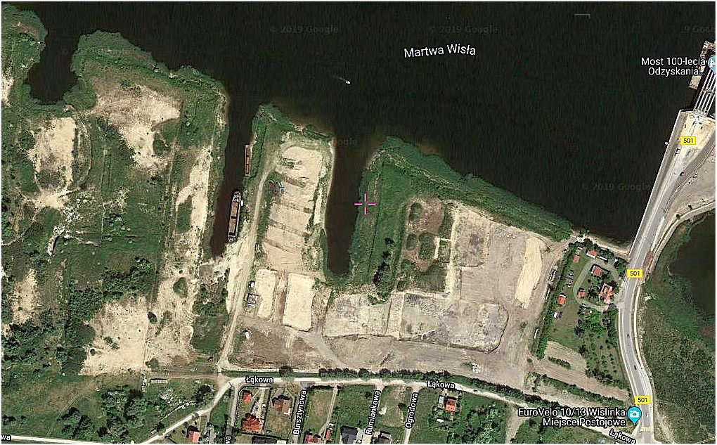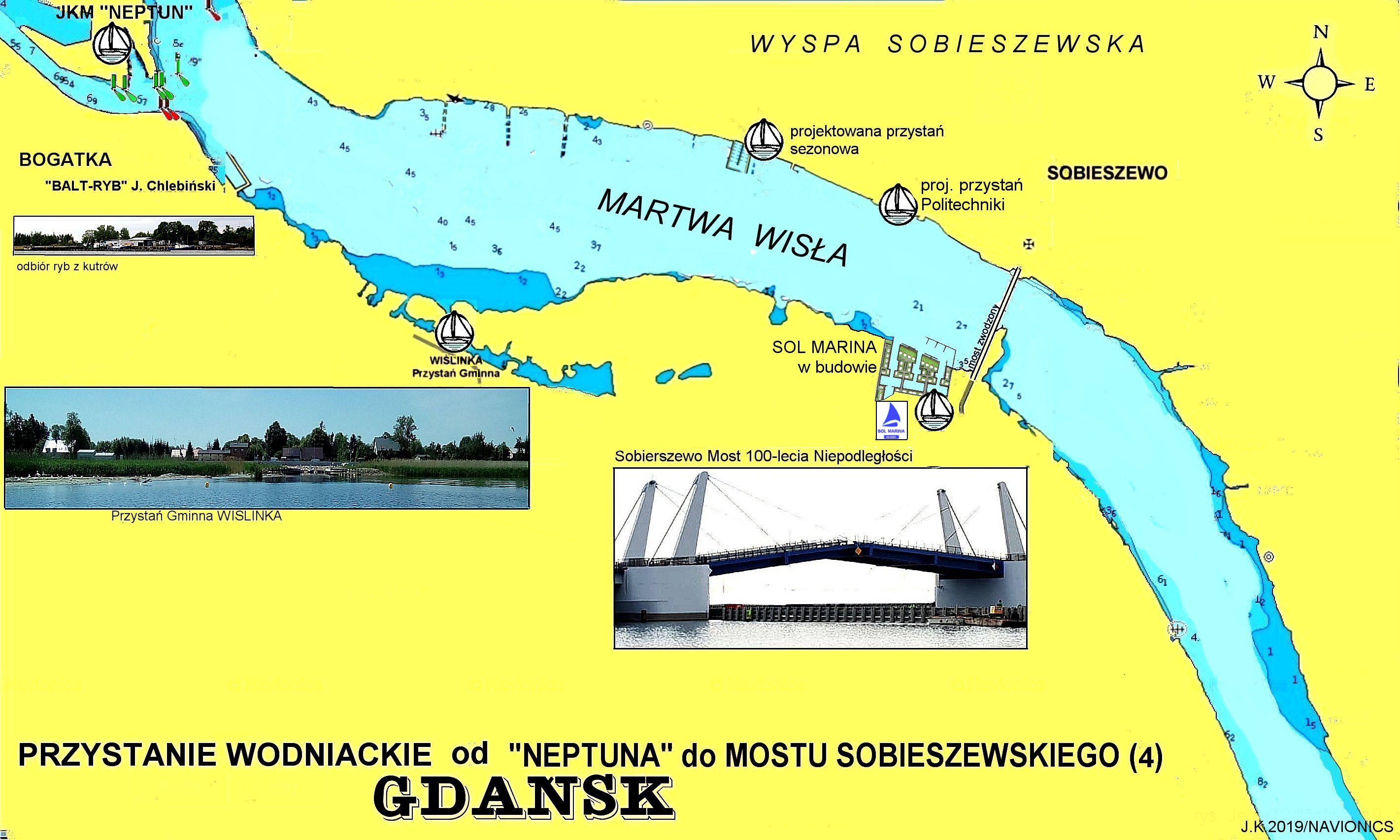 Wyjście na Zatokę Gdańska przez Wisłę Śmiała dogodne, krajobraz równiny żuławskiej urozmaica pobliska góra fosfogipsów Wislinka. Dojazd kołowy  z szosy elbląskiej z Przejazdowa drogą 501. Budowa usytuowana na południowym brzegu Martwej Wisły – tuż przy zwodzonym moście sobieszewskim prowadzona już jest na obszarze 11 ha. Ma tu powstać luksusowe osiedle mieszkaniowo  – wypoczynkowe. Jak wspomniałem realizacja inwestycji jest zaplanowana na trzy etapach.