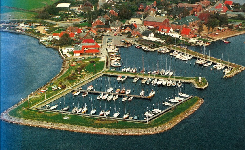 Po dłuższej przerwie ogłaszam kolejny konkursik locyjny. Zadanie polega na odgadnięciu co za port widzicie na poniżej zamieszczonej fotografii lotniczej. Zadanie o tyle trudniejsze, że trzeba podać w której z moich ksiązeczek i na jakiej stronie (numer) znajduje się jego plan. Dla ułatwienia podaję, że gęsto obstawiony pławami tor podejściowy biegnie przez rozległe płycizny, a w porcie podemie was atrakcyjna, uśmiechnięta "bosmanetka". Napewno wasze zawinięcie zostanie uhonorowane podniesieniem polskiej bandery (z orłem) na portowym maszcie.