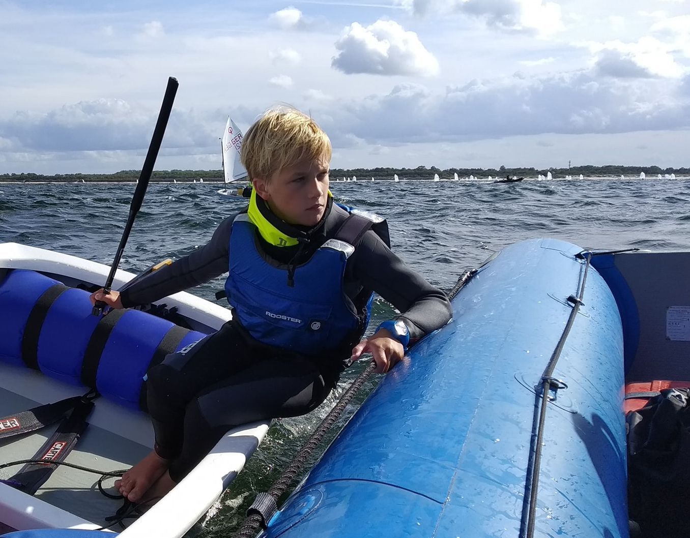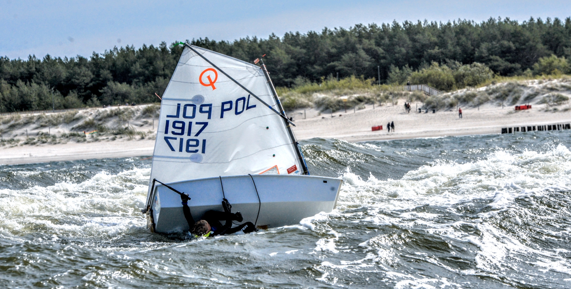 Autorem fotogramu jest Wojciech Lewandowski. Tytuł: „Trener mówił żeby nigdy nie puszczać steru”. Fotografia została zrobiona podczas PSKO w Dziwnowie. Młodziutki żeglarz pochodzi z AZS AWFiS w Gdańsku. Ma na imię Filip. Z wywrotki się podniósł i pożeglował dalej. Inne fotografie konkursowe obejrzyjcie tu: https://www.pantaenius-foto.pl/wyniki/wyniki-2019.