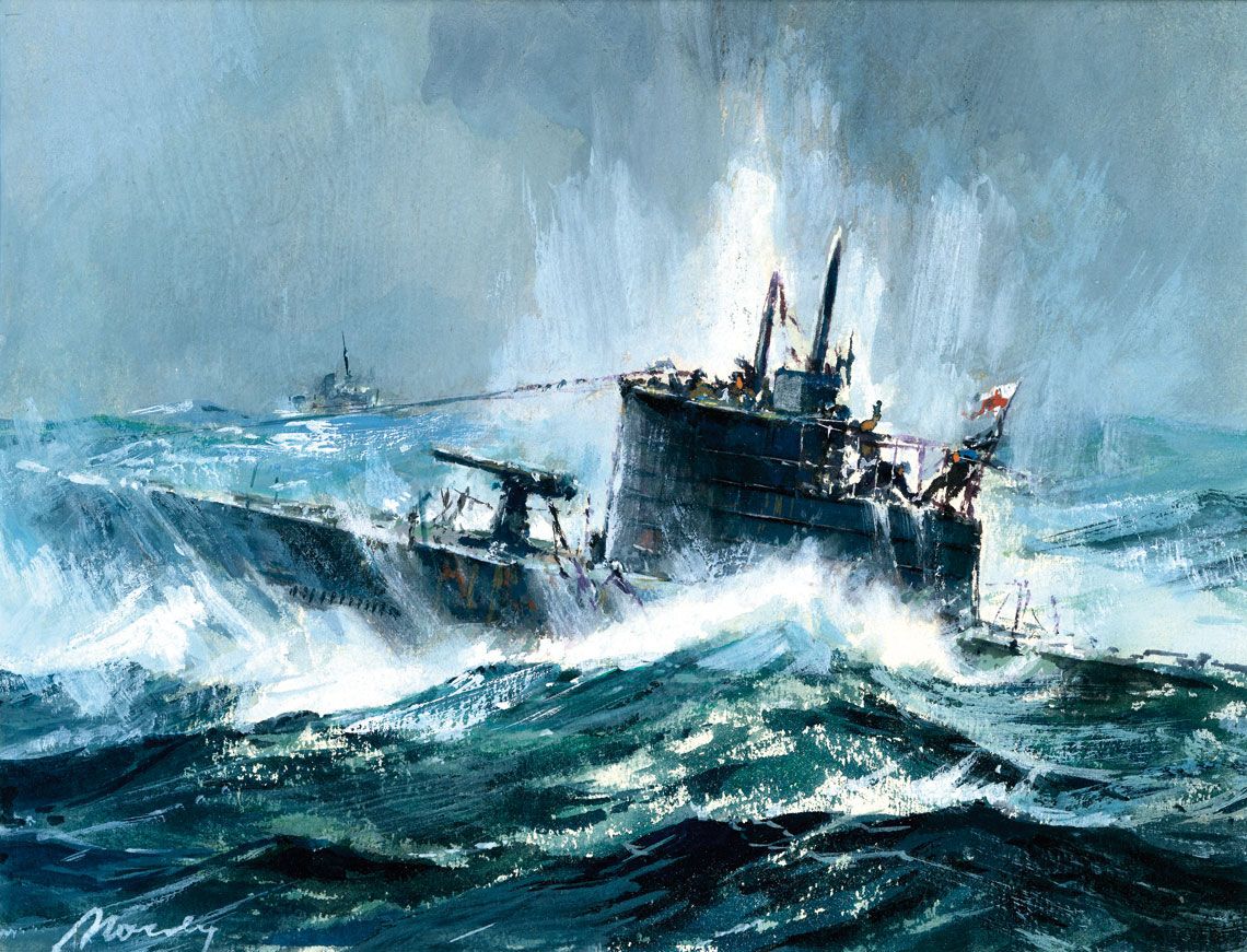 1 Grudnia nastepne wyjscie w morze kontynuujac podroz do portu docelowego ktorym byl Holy Loch w Anglii. Przejscie bylo bardzo ciezkie wlacznie z uszkodzeniami spowodowanymi bardzo ciezka pogoda sztormowa. Byla to najdluzsza podroz polskiego okretu podwodnego w histori Polskiej Marynarki Wojennej. W Anglii ORP “Jastrzab” przeszedl poprzez naprawy oraz serie udoskonalen glownie w zakresie lacznosci ktore to zabraly kilka tygodni i wkrotce okret byl gotowy do pelnej sluzby w warunkach bojowych. 22 Kwietnia, 1942 roku  ORP “Jastrzab” wyszedl w morze z zadaniem oslony konwoju PQ-15 idacego do Murmanska. Dokladnym zadaniem byla oslona przed okretami Niemieckimi operujacymi z baz okupowanej Norwegii. Dojscie do wyznaczonego sektora operacyjnego wokol konwoju bylo bardzo uciazliwe gdyz mgly oraz ciagly sztorm bardzo utrudnial Kapt. Romanowskiemu prowadzenie precyzyjnej nawigacji umozliwiajacej dojscia na wyznaczona pozycje. Pogoda dawala sie w znaki zalodze gdyz ladowanie baterii akumulatorow wymagalo wyjscia na powierzchnie i nieduzy okret w tych warunkach byl nekany ciezkimi falami. 2 Maja 1942 roku blisko juz do wyznaczonej pozycji oficer wachtowy zostal powiadomiony o odebraniu poprzez Asdic kontaktu echa.