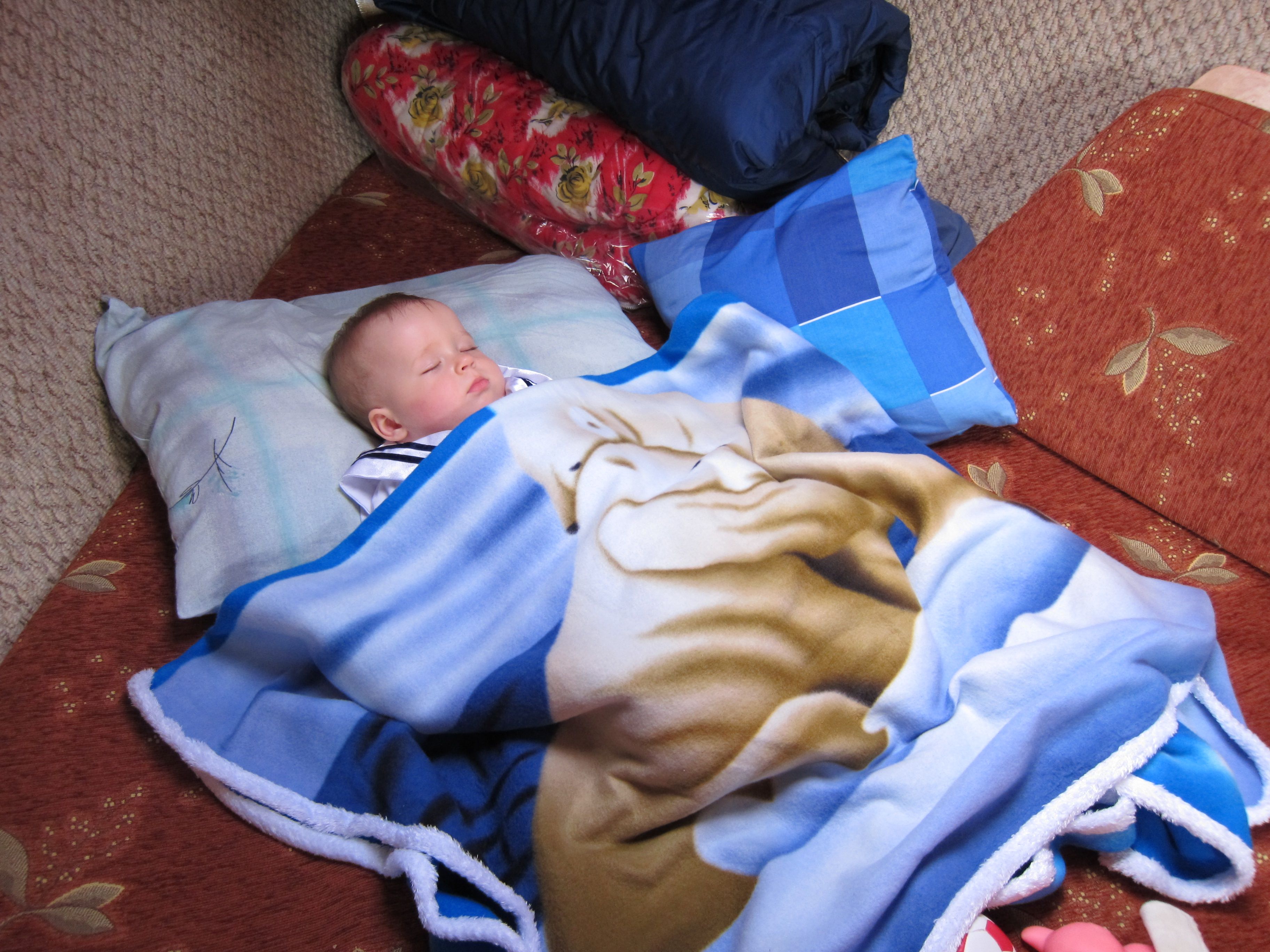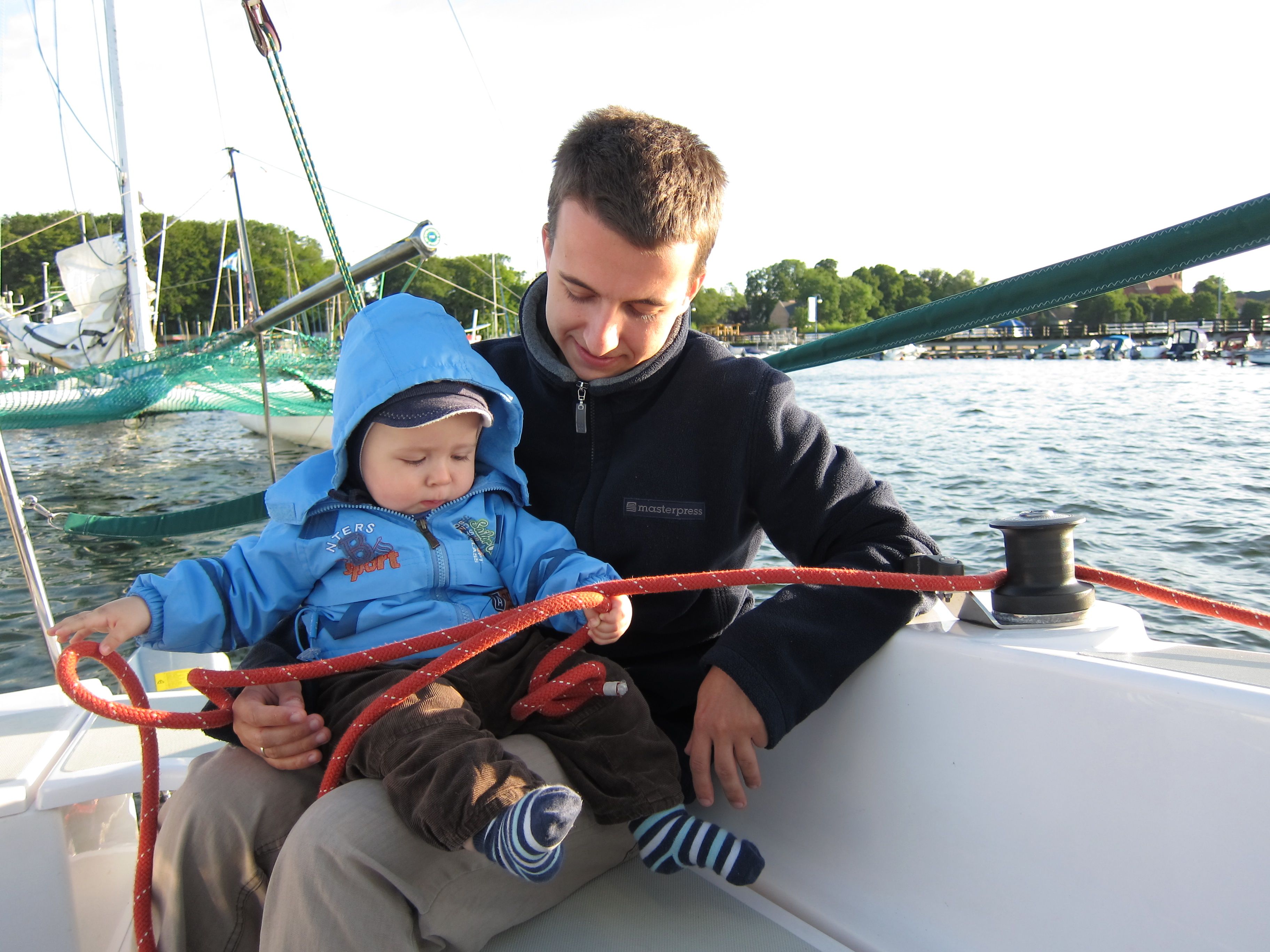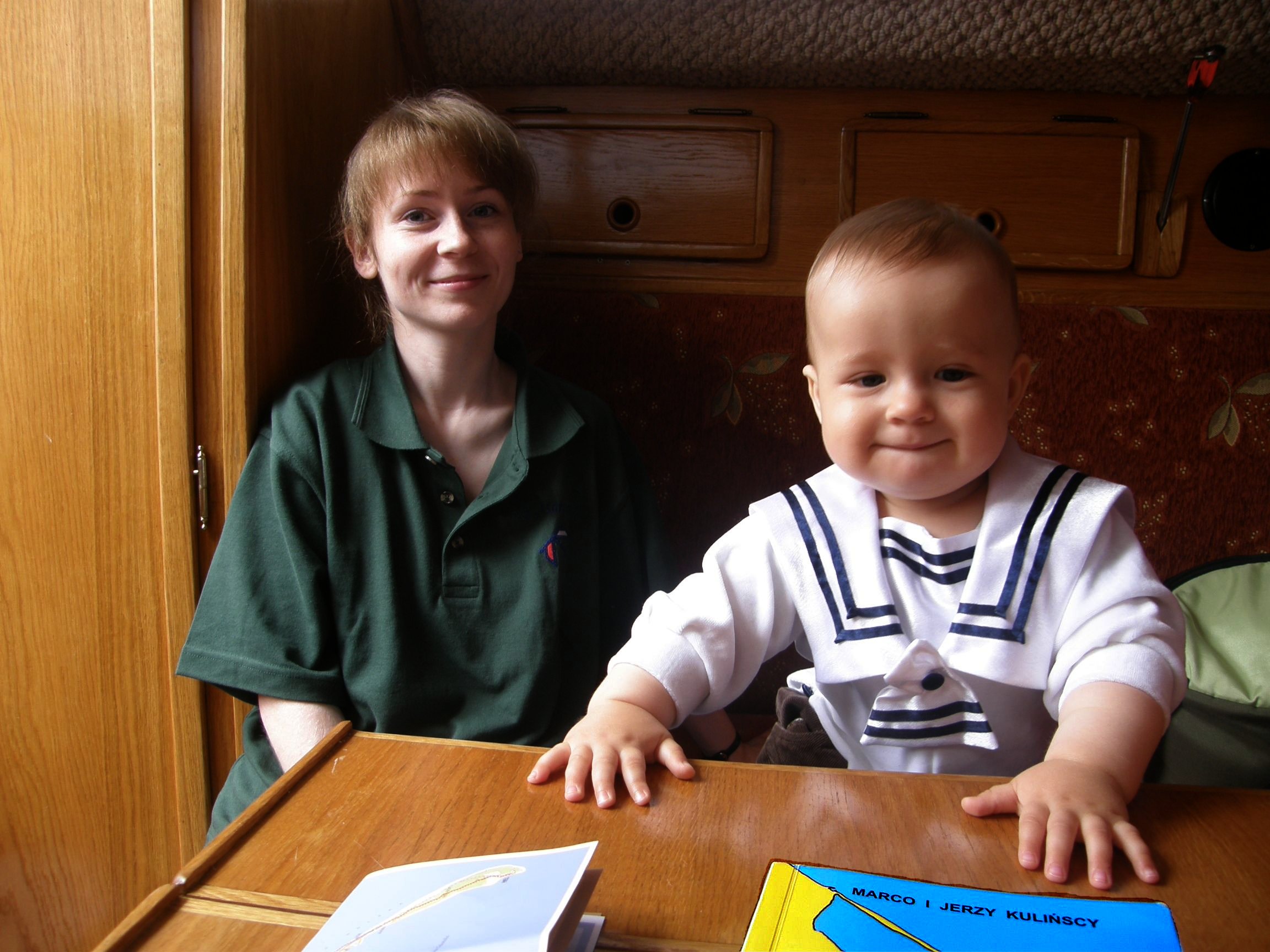 Okazało się, że tak małe dziecko doskonale i szybko przystosowuje się do jachtowych warunków. Koja dziobowa była dostatecznie dużym placem zabaw, wygodnym miejscem do spania i spożywania posiłków.