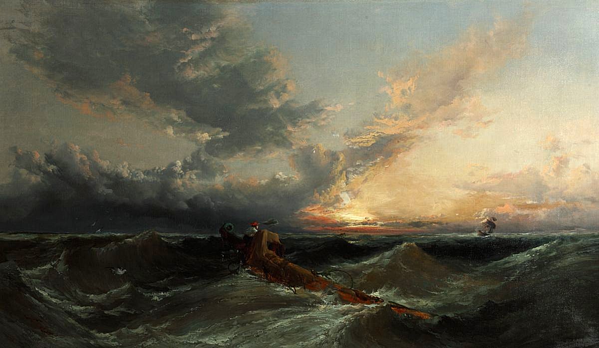 W czasach Jamesa Webba (1835–1895), autora obrazu Signal nie stosowano indywidualnych środków ratunkowych. A zatem jaki to „sygnał” miał autor na myśli? Chyba nie tę czerwoną czapeczkę na głowie rozbitka?