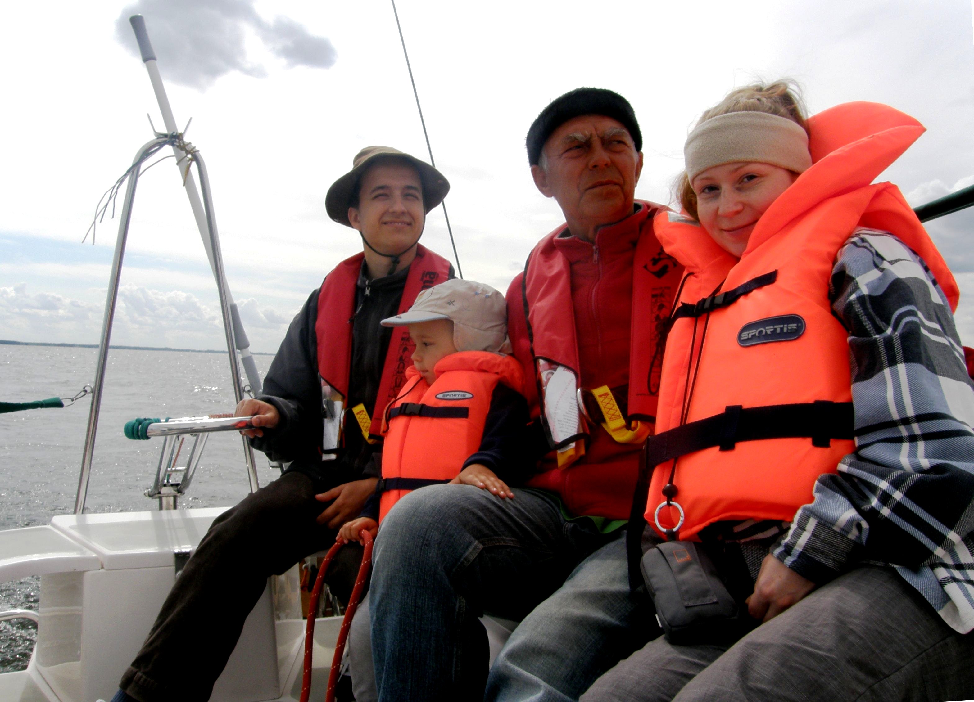 Paweł pierwszy raz na Zalewie Szczecińskim. Załoga: Paweł – 3 lata, mama – Małgorzata, tato – Piotr, babcia – Grażyna i ja - dziadek. Do Stepnicy załoga z Pawełkiem przyjechała z Gdańska 11 sierpnia, w poniedziałek bardzo późnym wieczorem. Pawełek, który w czasie podróży spał, teraz był bardzo ożywiony i cieszył się, że spędzi czas na jachcie. Musiał zwiedzić cały jacht, a gdy emocje opadły poszedł spać.