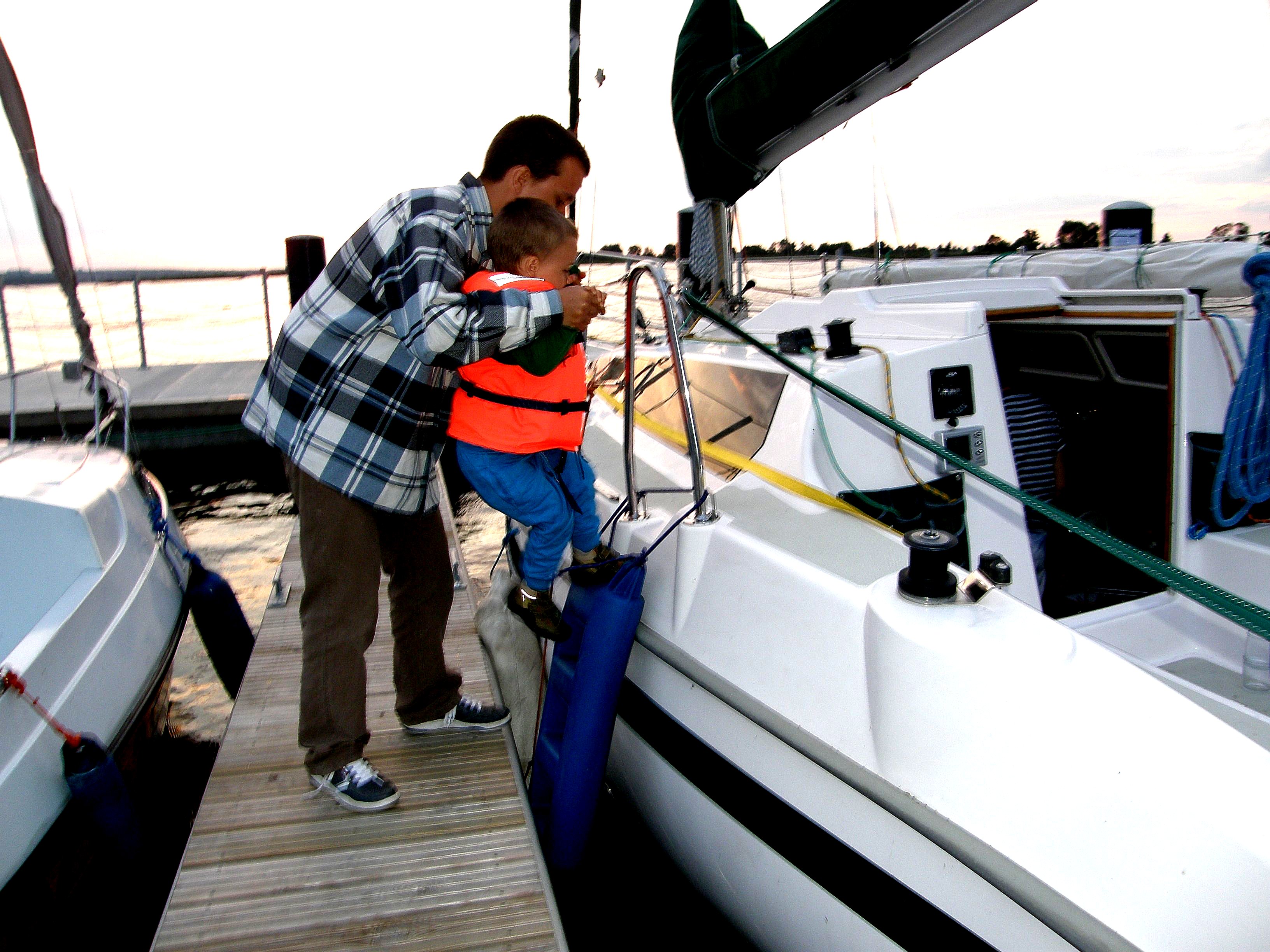 Pawełek poznaje jacht i uczy się bezpiecznego chodzenia po pokładzie.