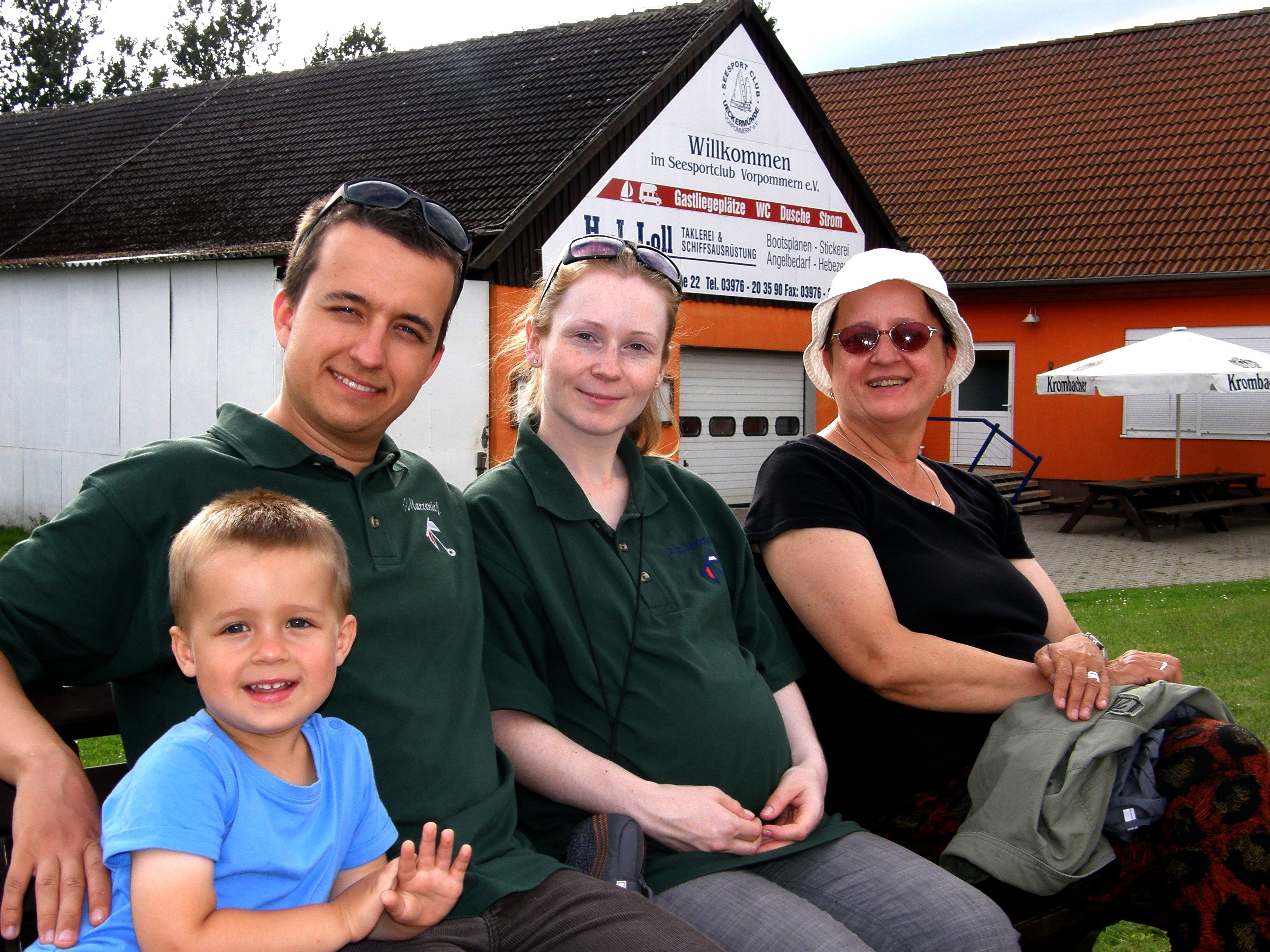 Wchodząc do rzeki Uecker wszyscy już byli zaciekawieni i wizytą w pierwszym niemieckim porcie Ueckermünde. Stanęliśmy w upatrzonym miejscu nabrzeża Seesportclub, a po opłaceniu się portowo załoga udała się na zwiedzanie miasteczka. W nagrodę za super zachowanie się Pawełek otrzymał dużą porcję lodów.
