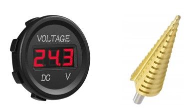 Woltomierz cyfrowy dobrej jakości kupicie już za 30 zł. Otwór robicie w panelu tytanowym wiertłem stożkowym (12 zł). Posuw musi być rozsądny aby nie poszarpać krawędzi. Jeżeli cyfry będą zbyt jasno świecić i będzie Wam to przeszkadzać w nocy nie modyfikujcie elektroniki woltomierza wymieniając rezystor bo potem trudno jest przywrócić szczelność. Zamiast tego naklejcie ścinek folii od przyciemniania szyb samochodowych, który za darmo dostaniecie w warsztacie który świadczy taką usługę. Uwaga! Zielone cyfry są przyjemniejsze na pierwszy rzut oka, ale w nocy oczy znacznie się mniej męczą od światła czerwonego w kokpicie. Praktyka.