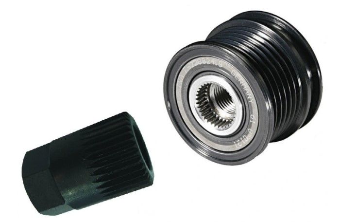 Na koniec pytanie o pasek klinowy. Powodem jego zużycia jest znacznie zwiększone obciążenie przez alternator. Standardowo w Waszym silniku były montowane alternatory maksymalnie 80A. Proponuje w sezonie zimowym dotoczyć dwa koła pasowe wielorowkowe – napędowe na wał główny oraz do pompy wody. To nie jest drogie – ale tokarz raczej nie powinien być początkującym młodziankiem. Na alternatorze stosujemy gotowe sprzęgło jednokierunkowe z półki (uwaga: będziecie potrzebowali specjalnego klucza gwiazdkowego, aby je dokręcić). Kosztuje zazwyczaj 12-15 zł. Rowki z tego sprzęgła są wzorem dla pozostałych kół. Teraz trzy ważne uwagi wykonawcze: