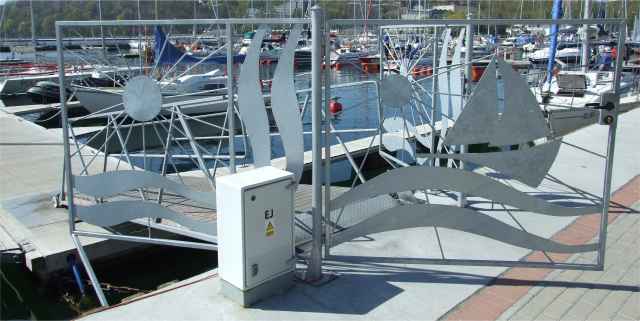 Co mi się rzuciło w oczy? Bramki zamykające nie tylko pomosty, ale i Falochron Wschodni. Bramki są na noc zamykane (w obawie przed złodziejami) ale utrudniają też zycie załogom jachtów. W razie zawiniecia nocą - nie ma możności np. skorzystania z toalety. Moze być i gorzej - bramki mogą uniemożliwić przyjście z pomocą komuś, kto wpadł do wody (np. rzucenie koła). Marina jest monitorowana kamerami TV oraz dozoruje ją w nocy spacerujacy po terenie ochraniarz. Otwarte za dnia bramki onieśmielają spacerowiczów i tym samym zredukowany został tzw. "efekt ZOO".