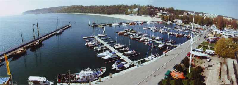 W piątek byłem w Gdyni. Piękny dzień, ogromny ruch na terenie i na wodzie Basenu Żeglarskiego im. Gen. M. Zaruskiego - teraz zwanego MARINA GDYNIA. Inwentaryzowałem zmiany, jakie ostatnio się pojawiły. Zrobiłem około 50 zdjęć - między innymi z wysokosci. Wdrapałem się na dach budynku Akademii Morskiej i demonstruję Wam poniżej prawie lotnicza panoramkę (skompresowaną na użytek okienka).