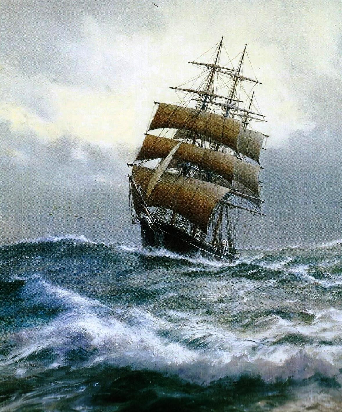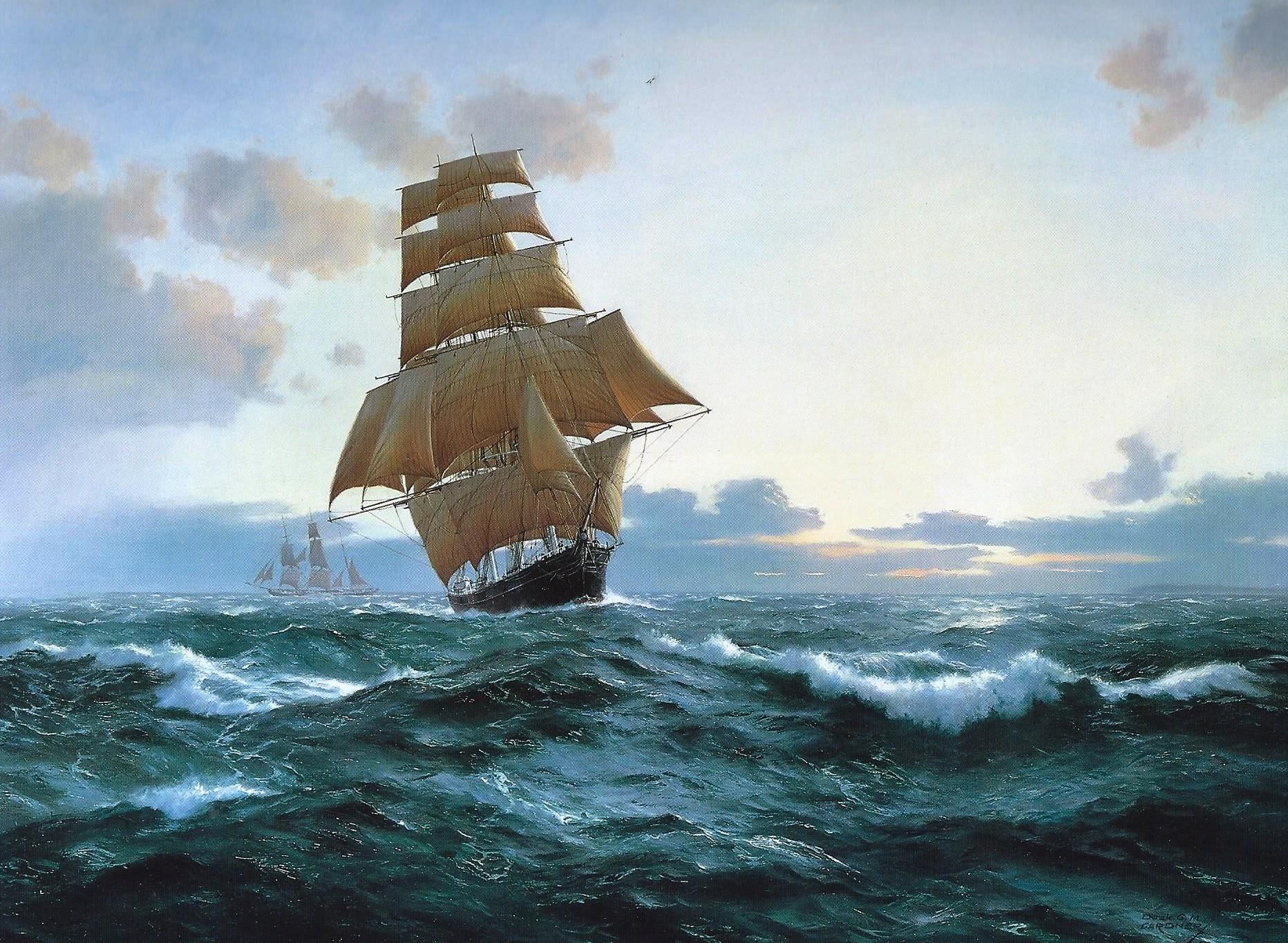 Na przedstawionych obrazach Derka Gardnera mamy rekordzistę trasy transatlantyckiej, Sovereign Of The Seas ,który postawił wszystko co ma, a także dodatkowe boczne żagle zwane lizlami na wytykach z rej oraz Leander, który ze względu na ciężką pogodę ograniczył ożaglowanie do marsli, ale dostawił fokżagiel (dolny na przednim maszcie), by przenieść środek ożaglowania do przodu co ułatwia sterowanie. Warto wiedzieć, że przy wspaniałych kształtach i dużych prędkościach – właśnie z tych powodów – były to żaglowce narowiste i niestosowny ruch sterem mógł spowodować wyostrzenie, czyli gwałtowny skręt do wiatru i położenie jednostki na wodzie.