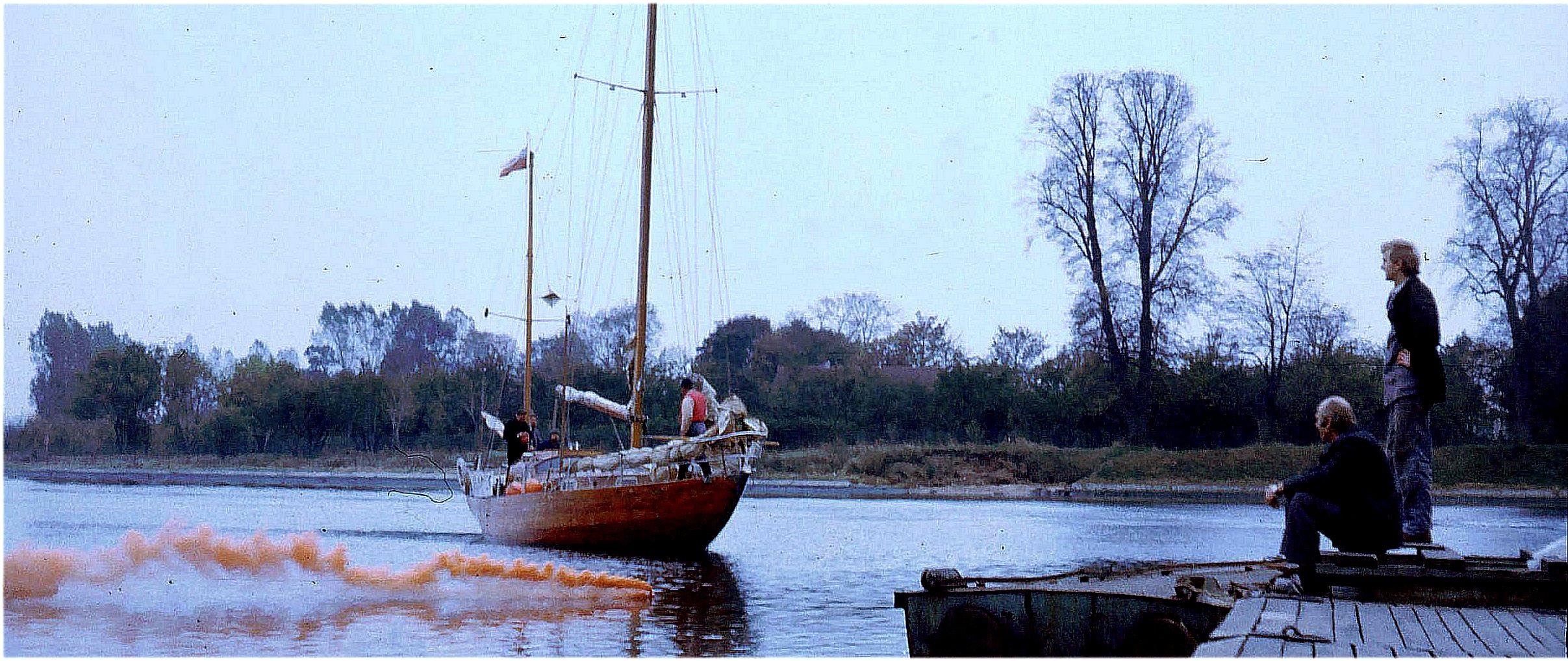 - z "deliverki" mam takie lekko humorystyczne wspomnienie , gdy po zwodowaniu ruszyliśmy do AKM-u siedząc w kokpicie cieszyliśmy się z udanej operacji nikt ponownie nie sprawdził na ile i w jakim tempie jacht nabiera wody. Bo że każdy drewniak wówczas po zwodowaniu brał wodę to była norma. W okolicy JK Stoczni zszedłem do messy a tam deski podłogowe pływały już do połowy koi. No , chyżości ruchów "na wiaderkach" dostaliśmy wyjątkowych.